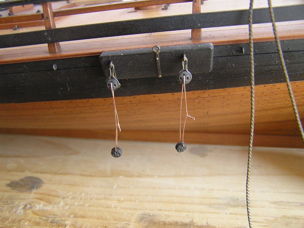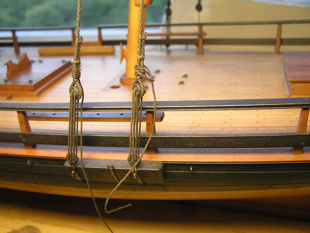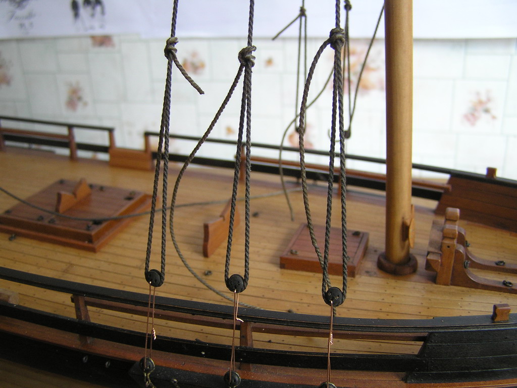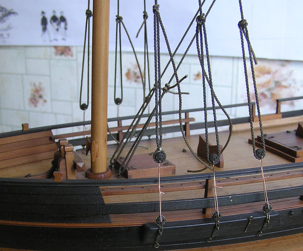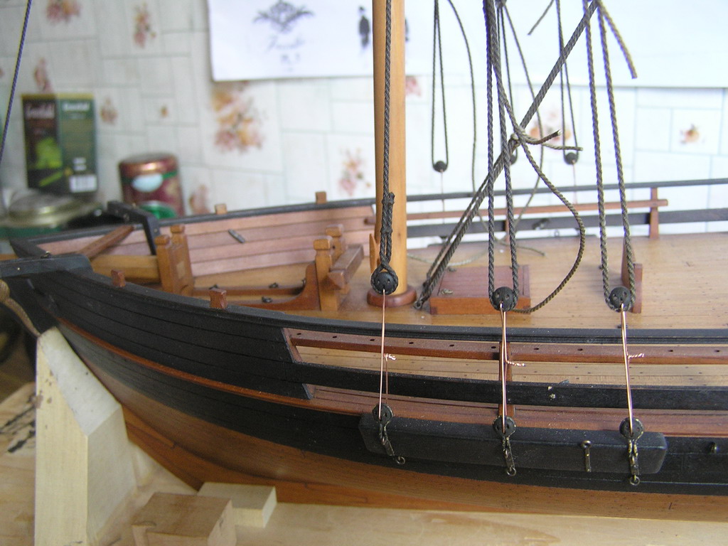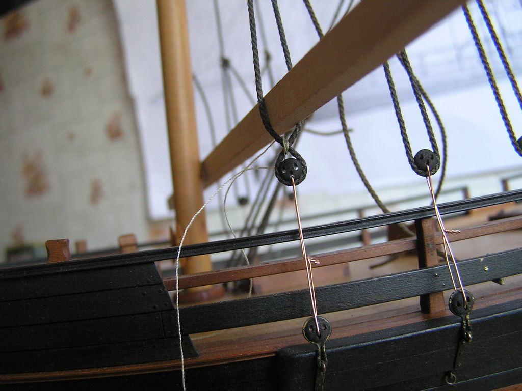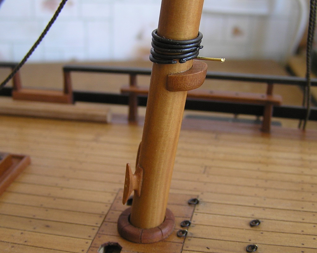 На мачте - сегарсы из 1мм латунной проволоки. Концы утончены вполовину и загнуты. На палубе обычные рым- болты. Канавок не имеютegen писал(а):И вот то кольцо, что на мачте у палубы - оно составное или разрезано после изготовления? Или там просто гравировка канавок?