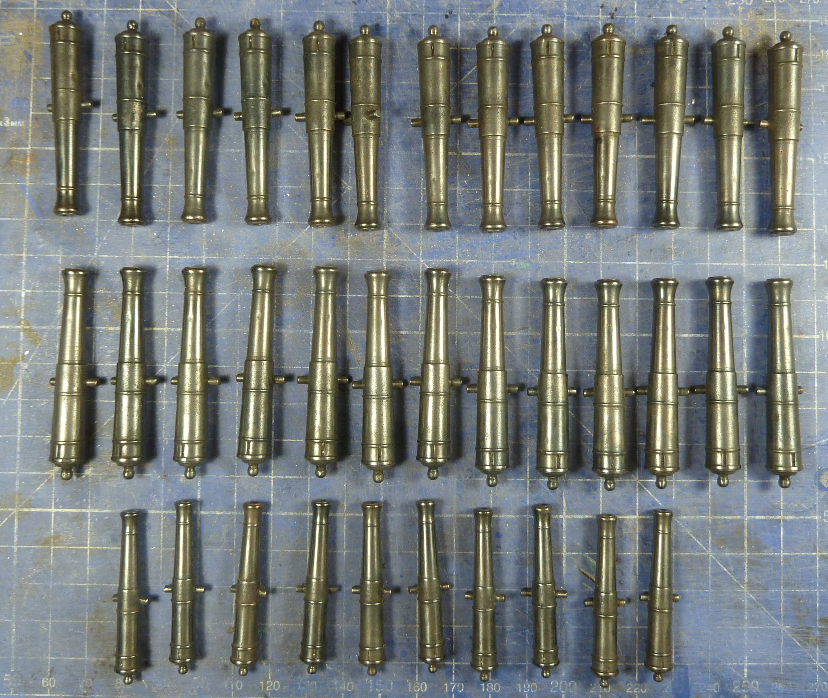 Решил расширить немного производство. Начинаю изготавливать на заказ артиллерию и якоря. Литье будет из легкоплавкого стоматологического сплава или аналогичного ему по свойствам. На данный момент располагаю небольшой коллекцией мастер моделей, и силиконовых форм,но по чертежам заказчика изготовлю,модель и форму если потребуется. В стоимость работы это не войдет, при условии что оснастка останется у меня и будет в дальнейшем использоваться. Отливки после механической обработки следует меднить и чернить. Возможно изготовление как только литья так и полностью готовых, черненых изделий. Покрытие прочное, не стирается пальцами и не отваливается. Чернение происходит на всю глубину медного слоя. Поцарапать деталь до олова конечно можно. но чернение с латуни стирается и царапается намного больше. Обычно для придания более темного оттенка я литье на своих моделях покрываю слоем жидкого битумного лака.