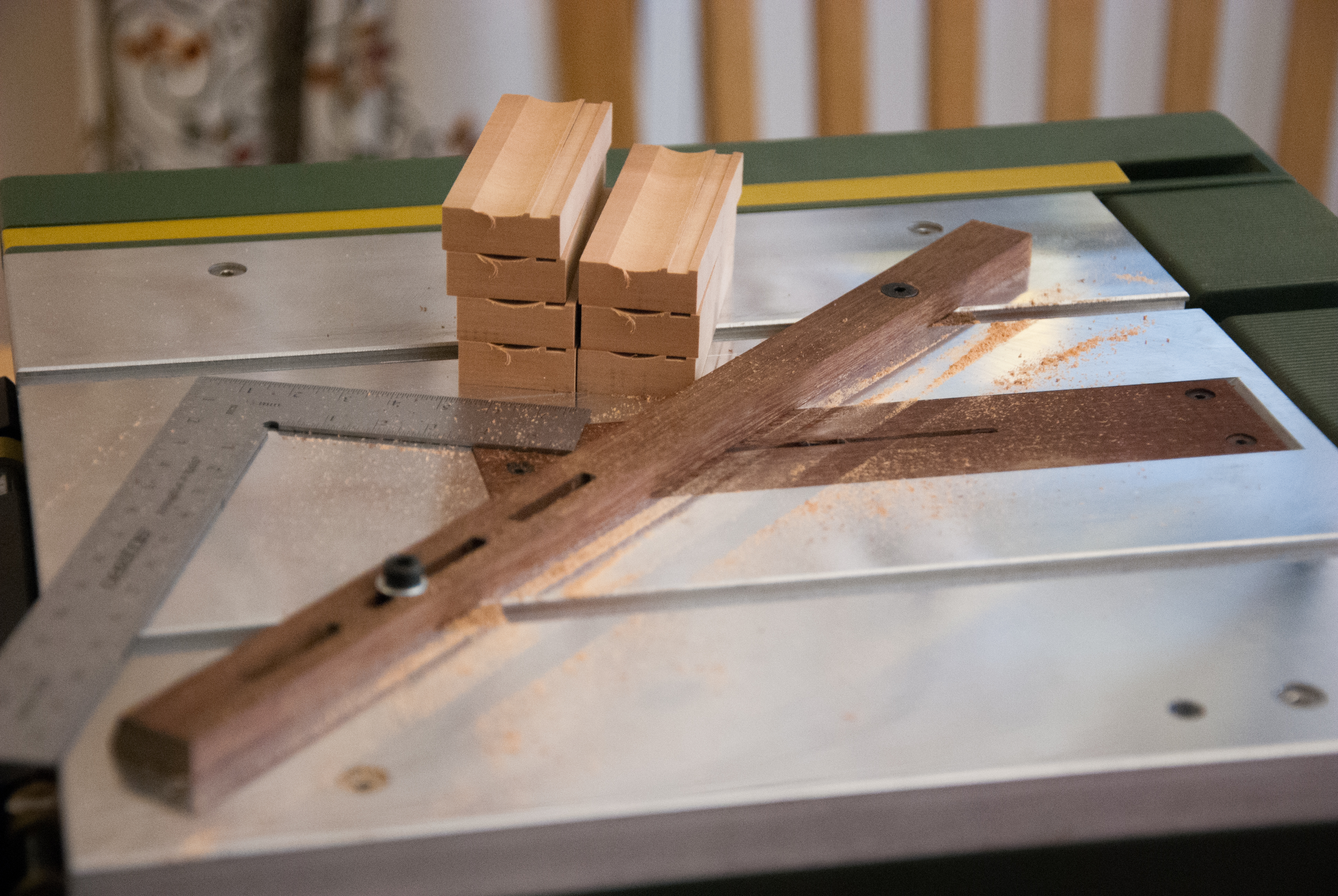 Начал с массивных деталей – щек боковых и массивной серединки с опиранием на палубу. Подготовил одну заготовку. Размеры щек и серединки близки. Сделал по наибольшему. Форму заготовок для щек и для серединок лафета формировал на циркулярке. Кроме маленького закругления.