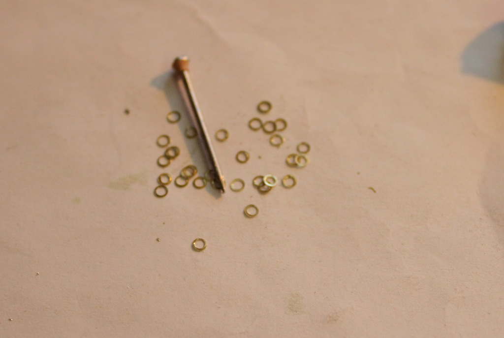 Поехали ! Берём латуньку 0.15 мм . Опять квадратики и опять отверстия и снова тот же гвоздь !!!