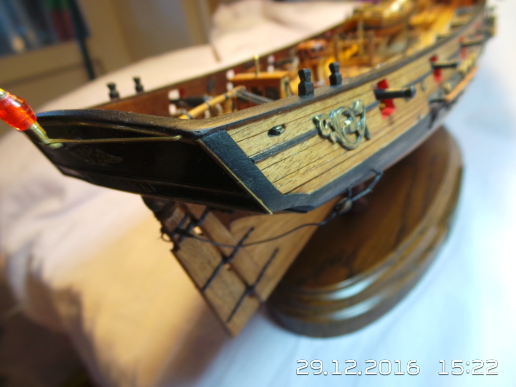 Фонарь какой то не фонаристый- вроде игрушки с елки новогодней. И пушечные порты красные-уж сильно выбиваются из общей цветовой схемы. (хотя, как говорится, вкус и цвет-повод для драки)