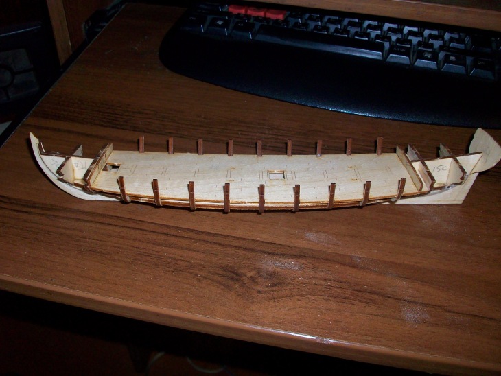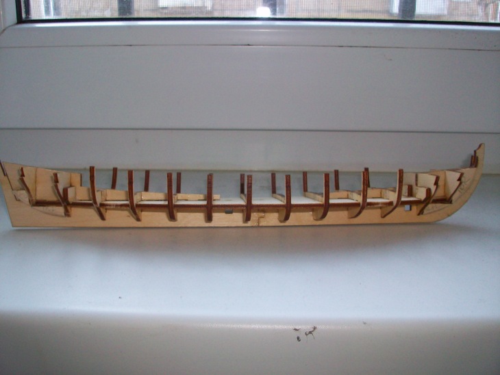 Не рассчитал силу нажатия,когда примеривал подлегарс к шпангоутам.В результате он сломался.Пока вставил так.Вторую часть стараюсь подогнать почти незаметно.