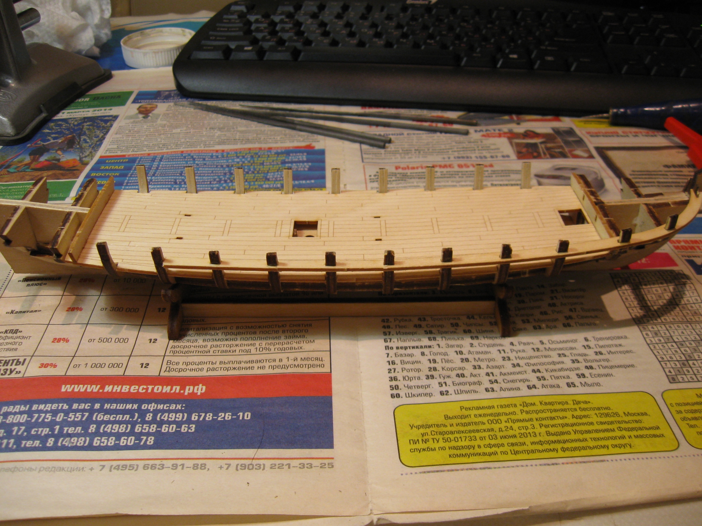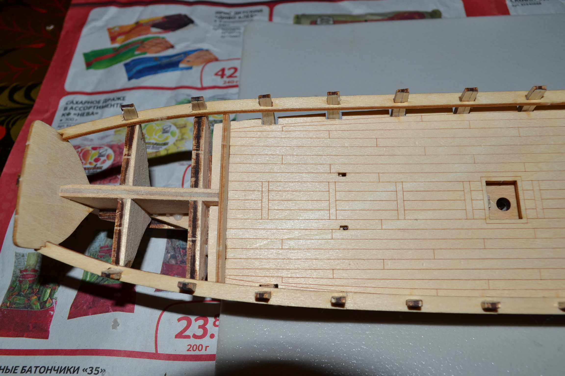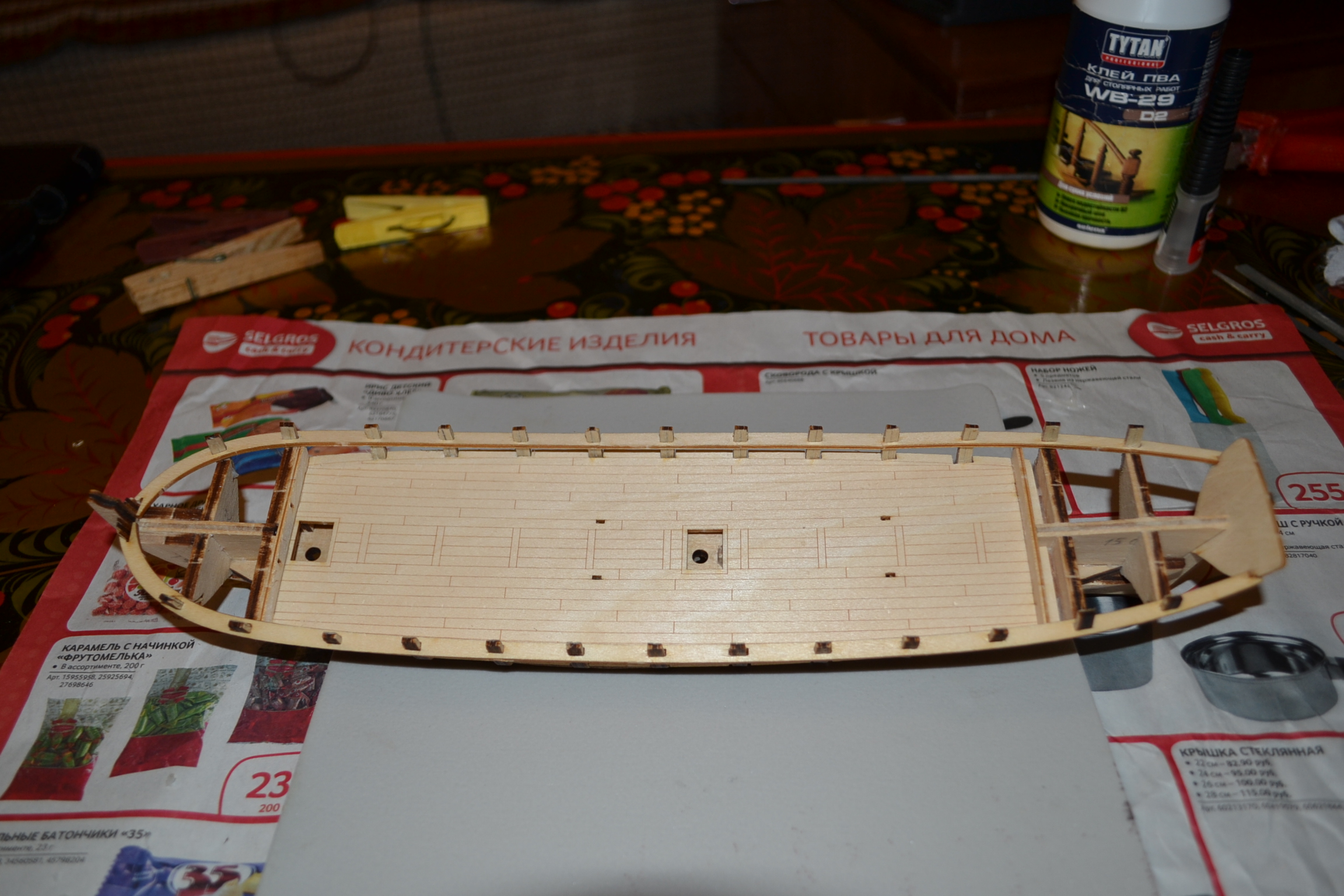 Точнее сейчас я закончил полностью обшивку бортов.Теперь надо в некоторых местах соскрести капли клея.Хочу также попробовать зашпаклевать большие щели.