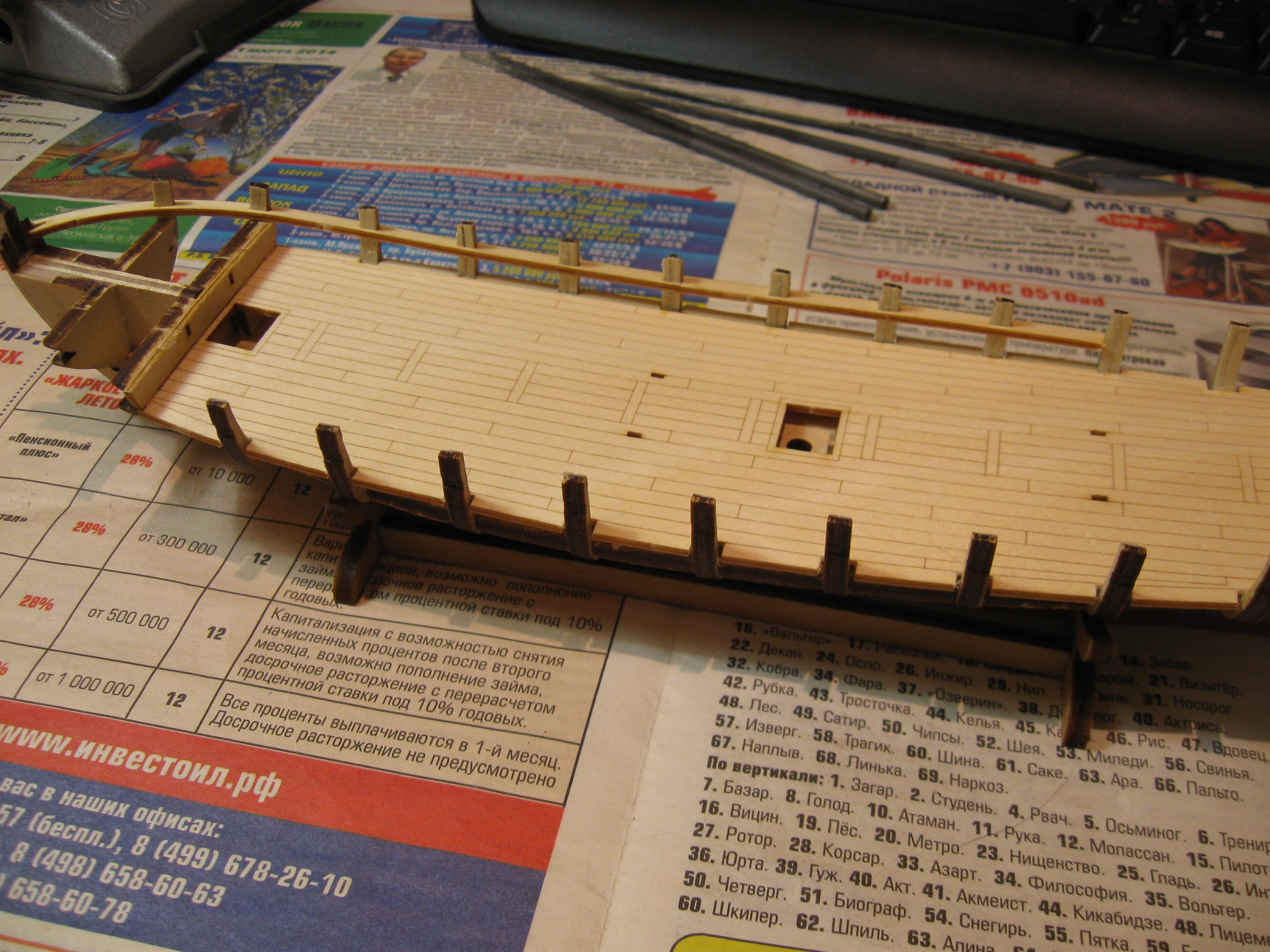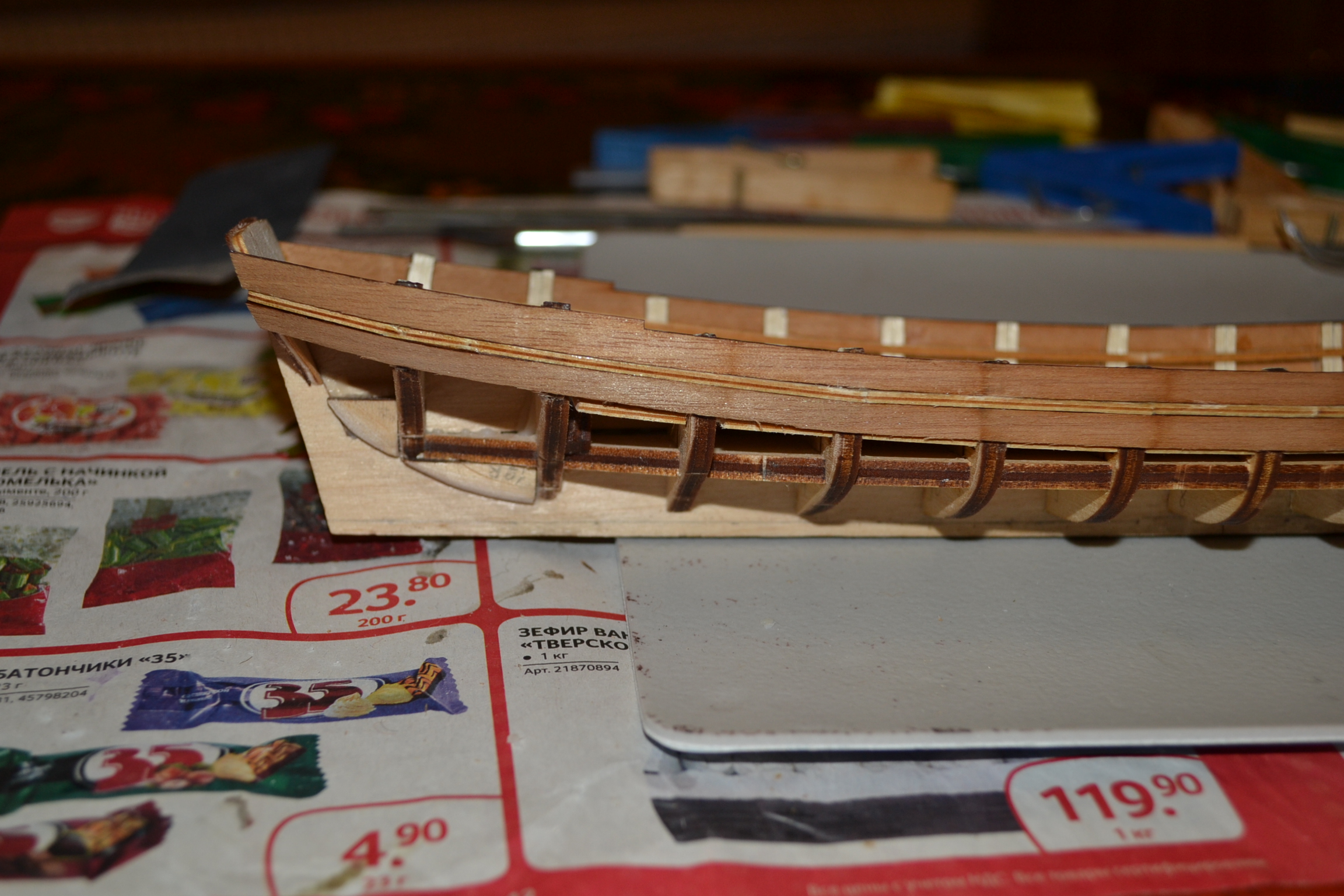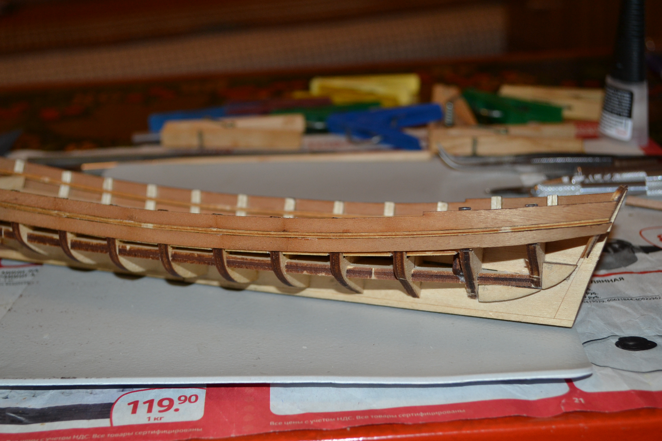 Попробовал себя в сгибании реек.Приклеил по 2 рейки на правый и левый борт.