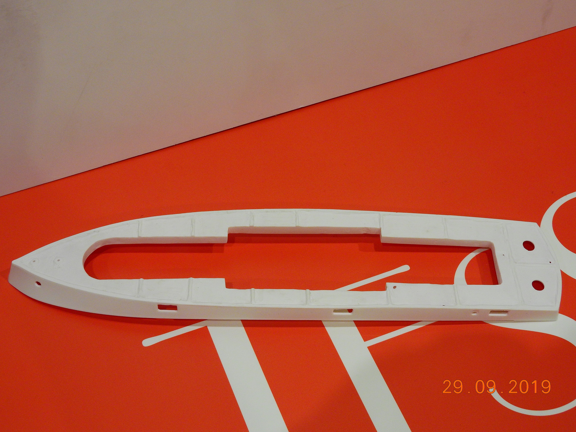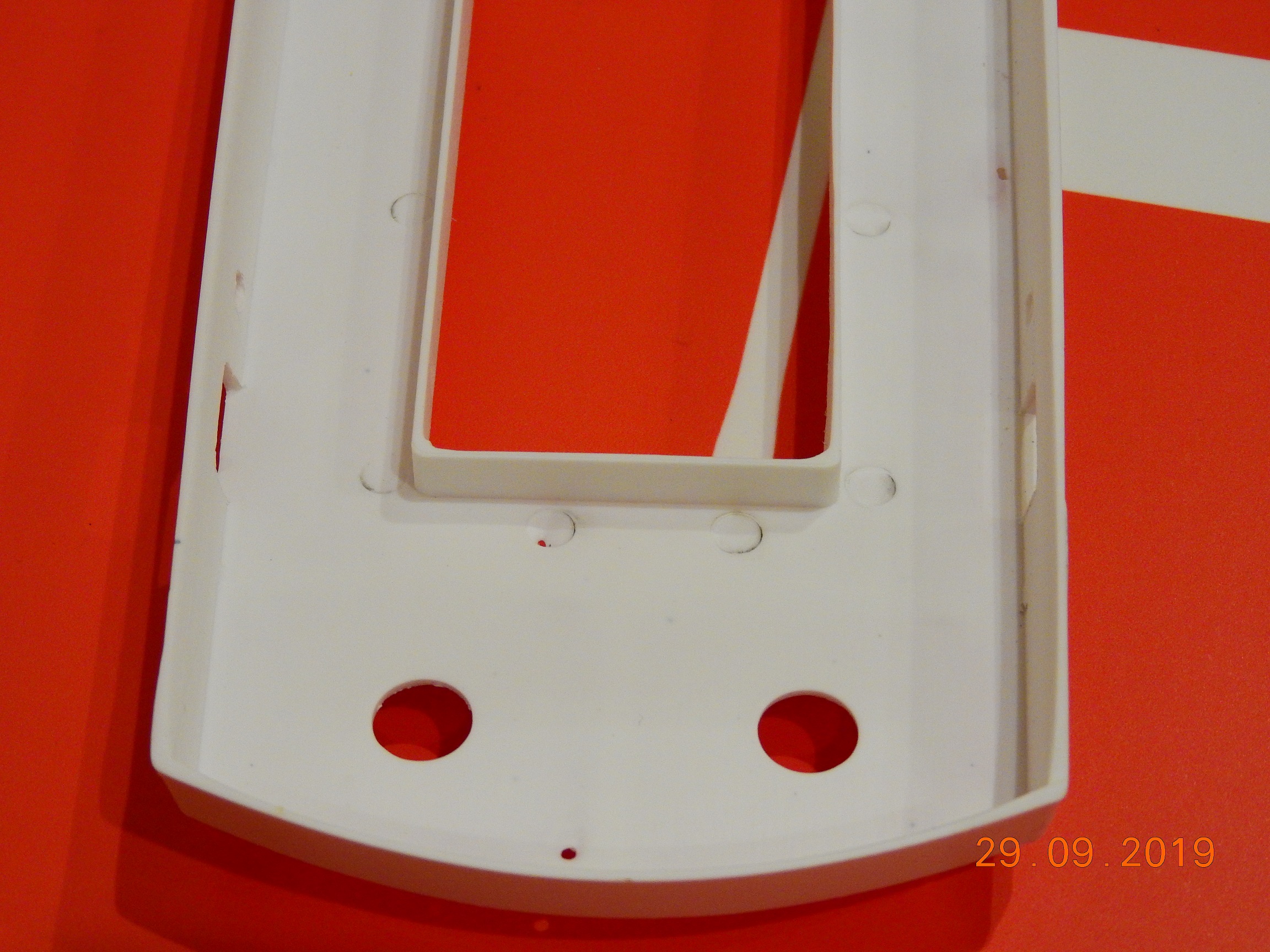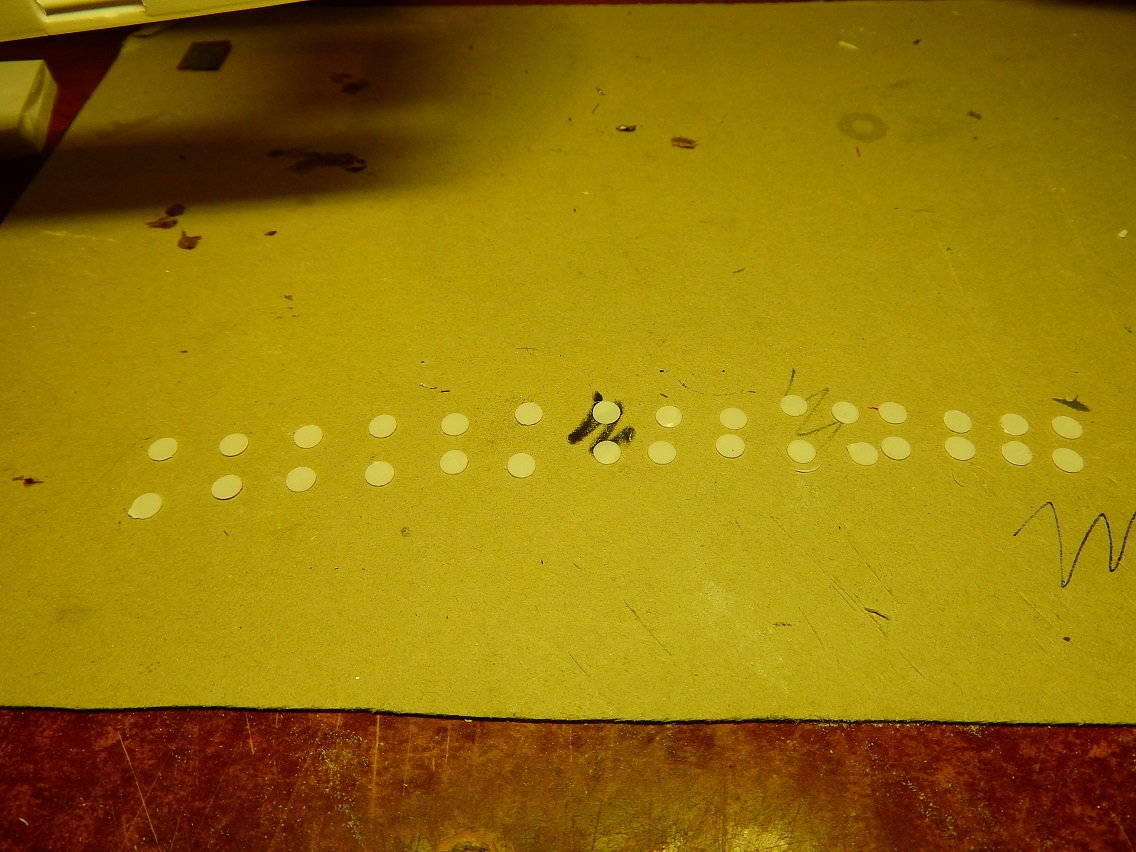 Следующий шаг - зашпаклевать 22 ямки на палубе от толкателей прессформы :