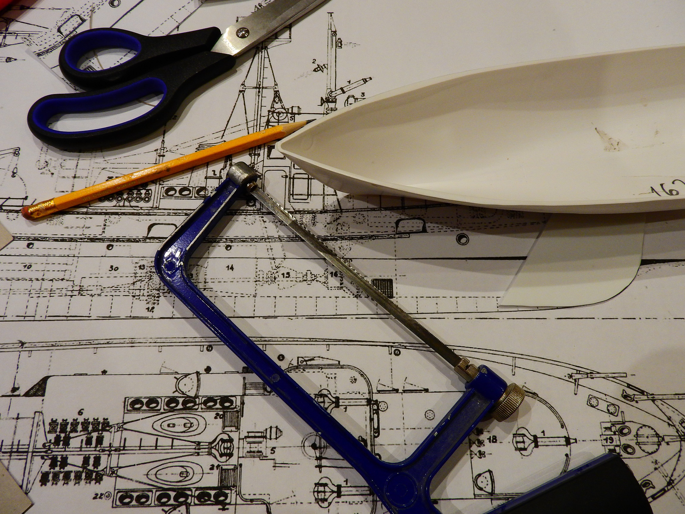 По ходу сборки : пока что , никаких созидательных действий не происходит , скорее наоборот - идёт разрушение ! Вес верней части корпуса был 99 гр. , вес самого корпуса 162 гр. Толщина стенки корпуса доходит до 2,5 мм !! Явный переизбыток и прочности и веса . Тем более , что водоизмещение парохода , в этом масштабе , должно быть немногим менее 800 гр . Поэтому точим - шкурим , точим - шкурим ...