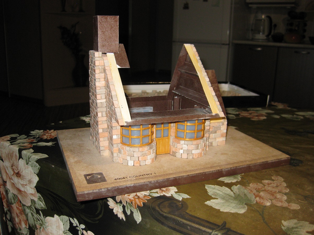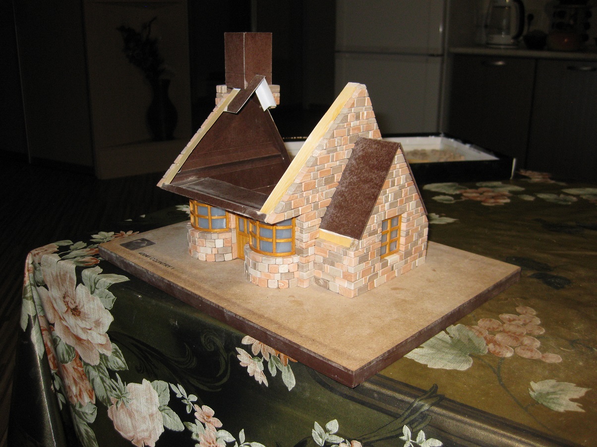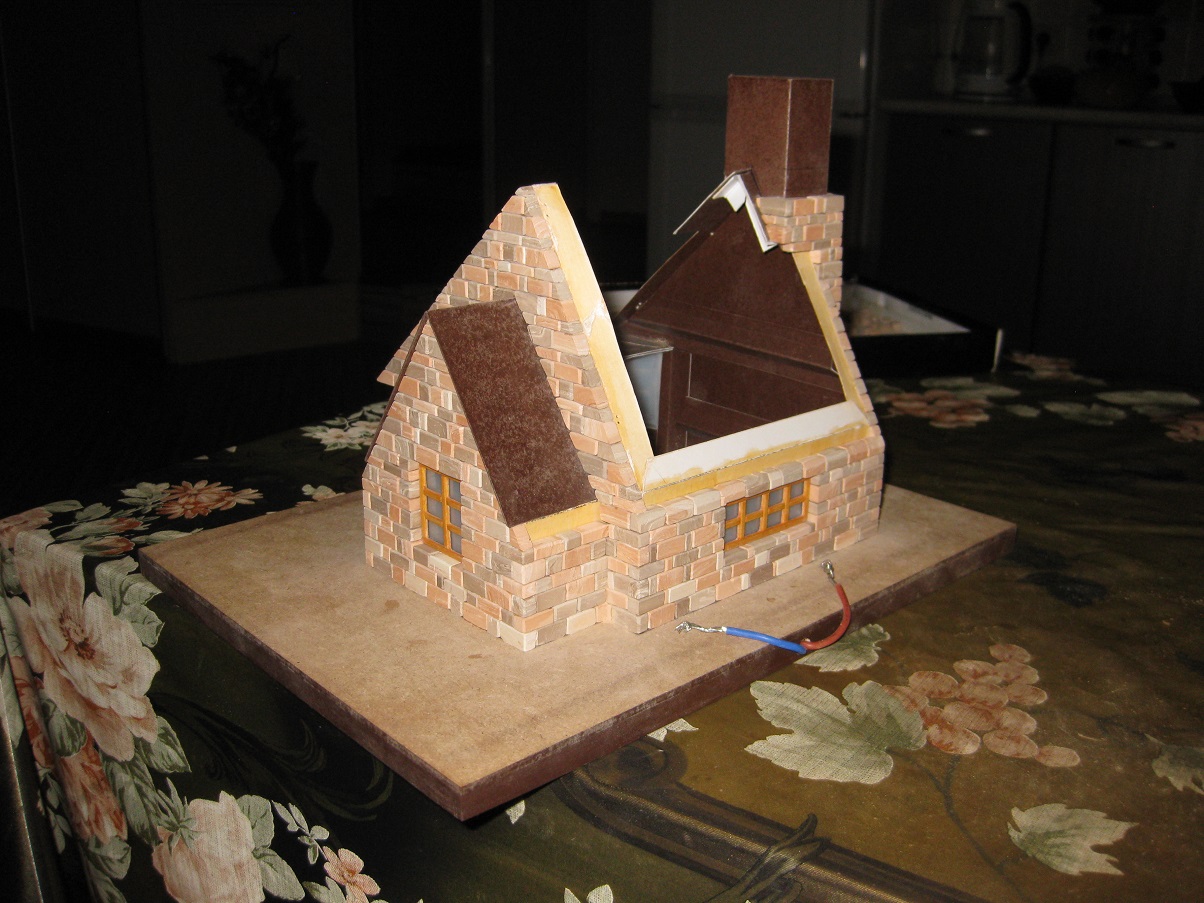 Медленно но уверенно строим стены домика. Дошли до момента, когда необходимо для продолжения приклеить основание крыши. Вот что получилось.