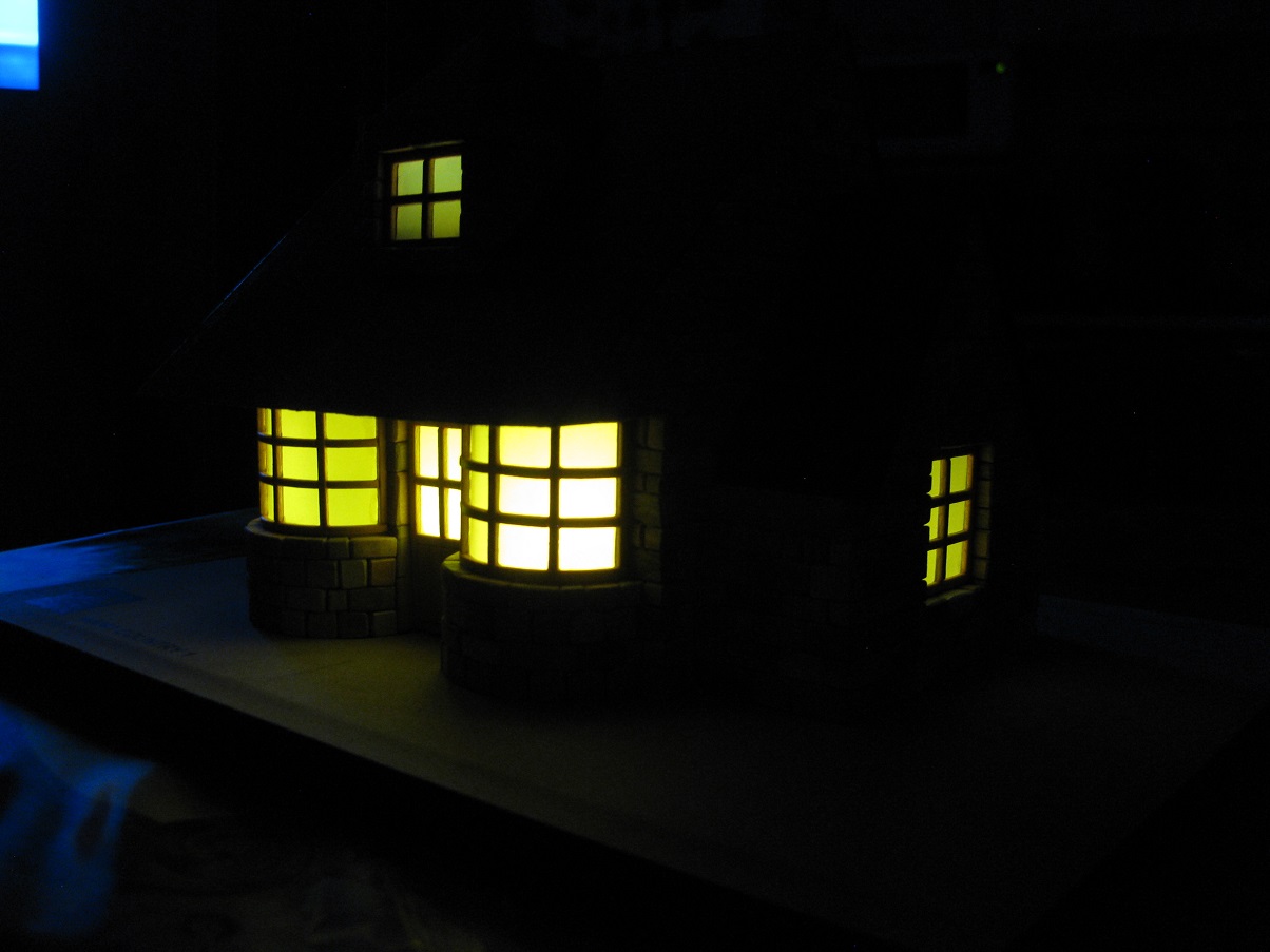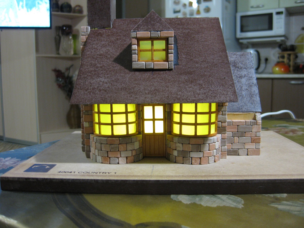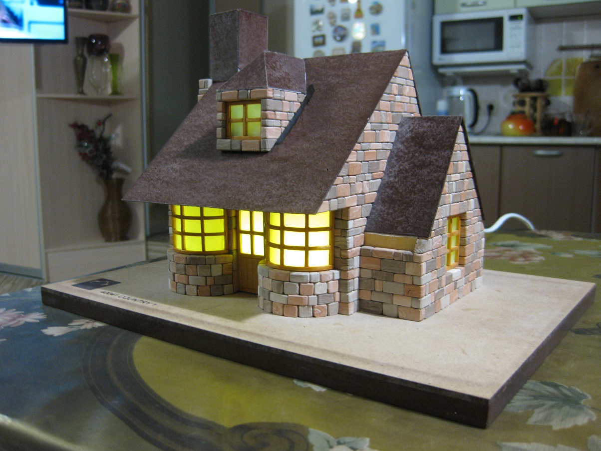 Медленно но уверенно строим стены домика. Дошли до момента, когда необходимо для продолжения приклеить основание крыши. Вот что получилось.