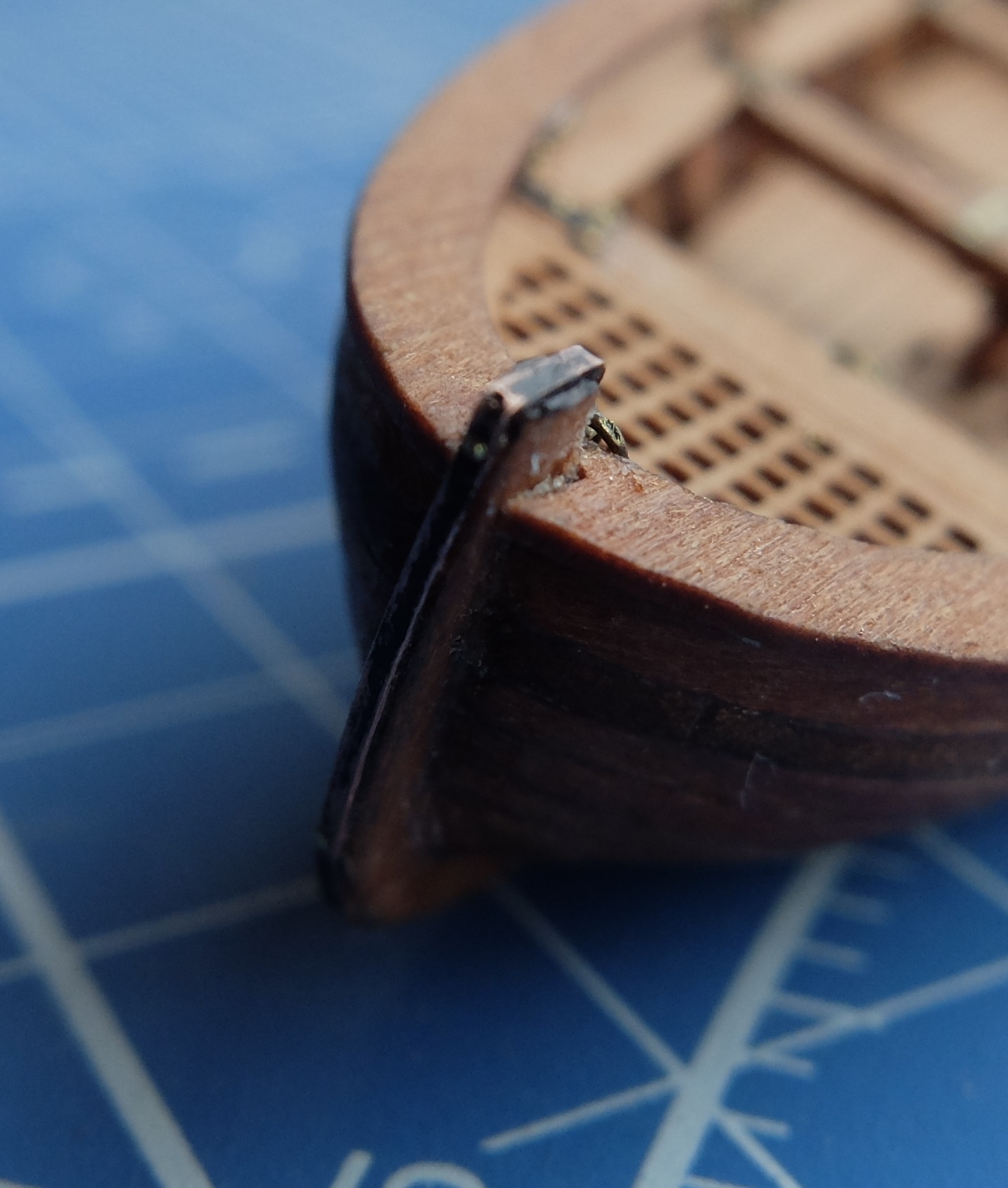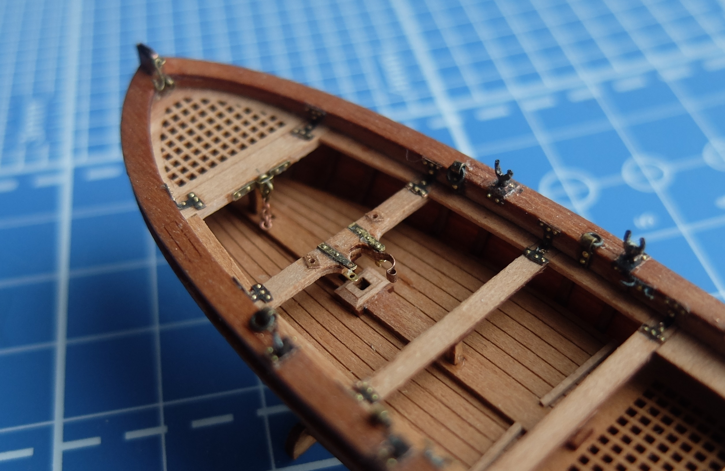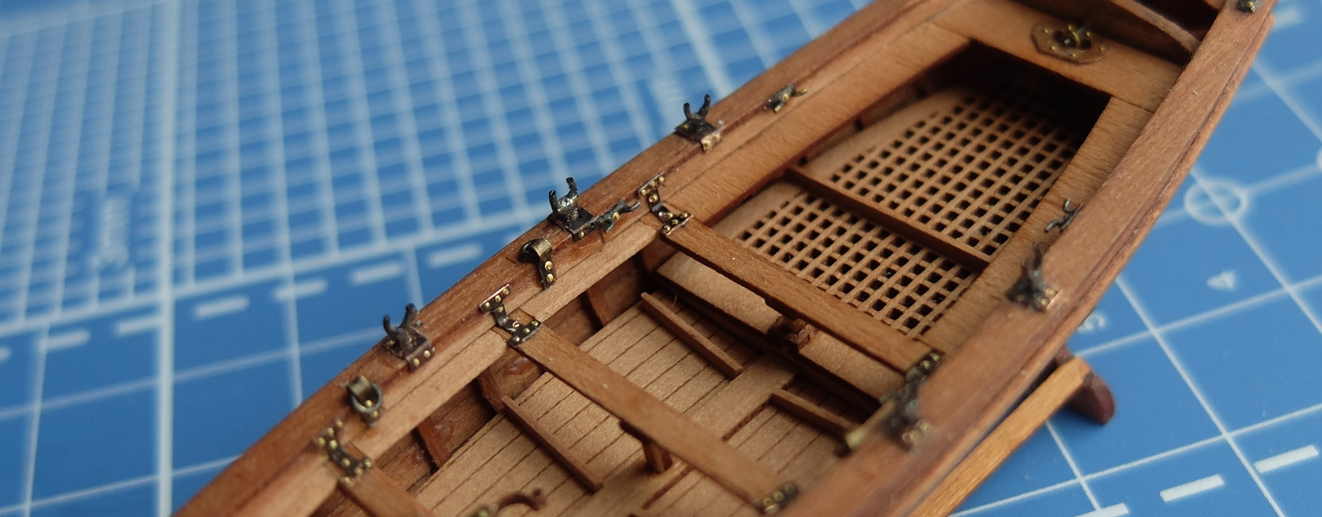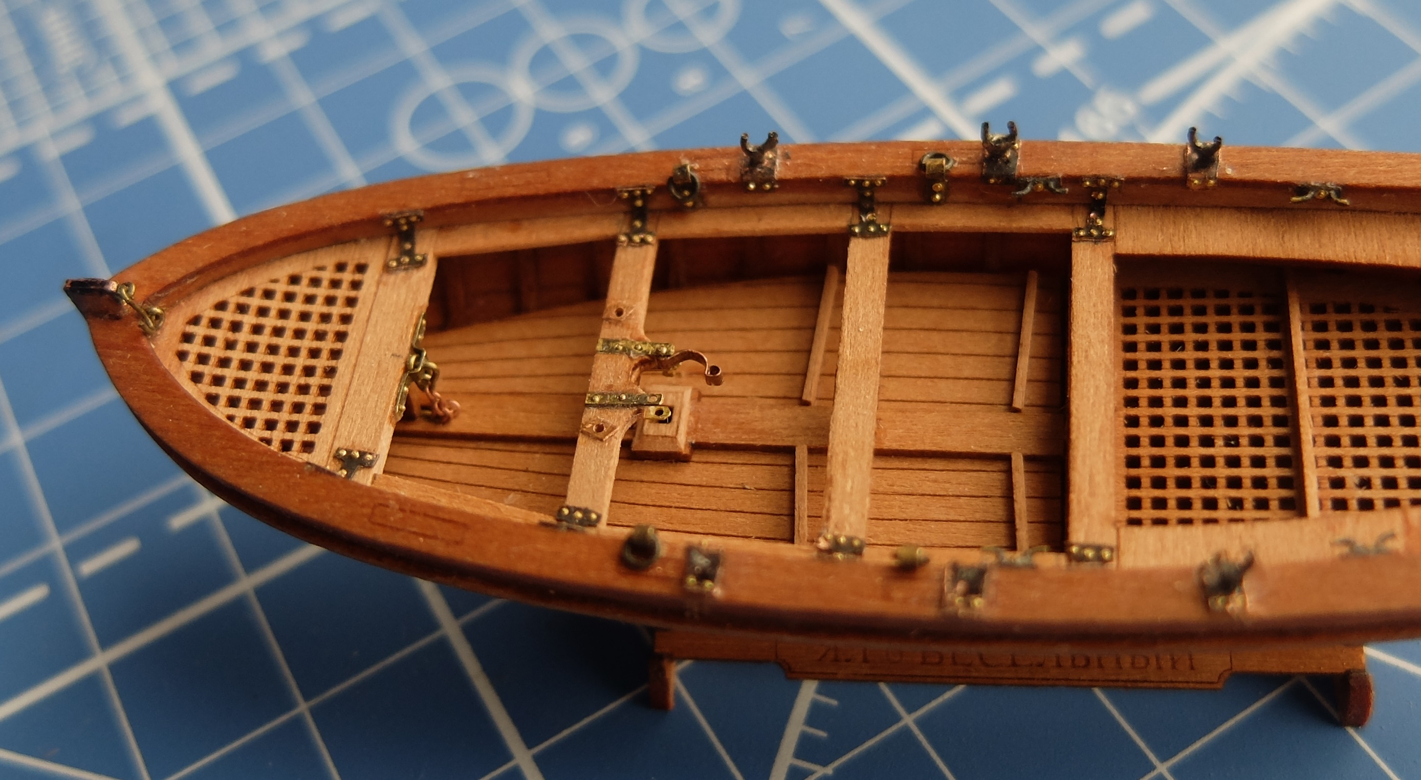 добавил уключины. гвоздики не чернил чтобы не сливались с деталями. это на макросъемке их так видно, а на модели только через увеличительное стекло.