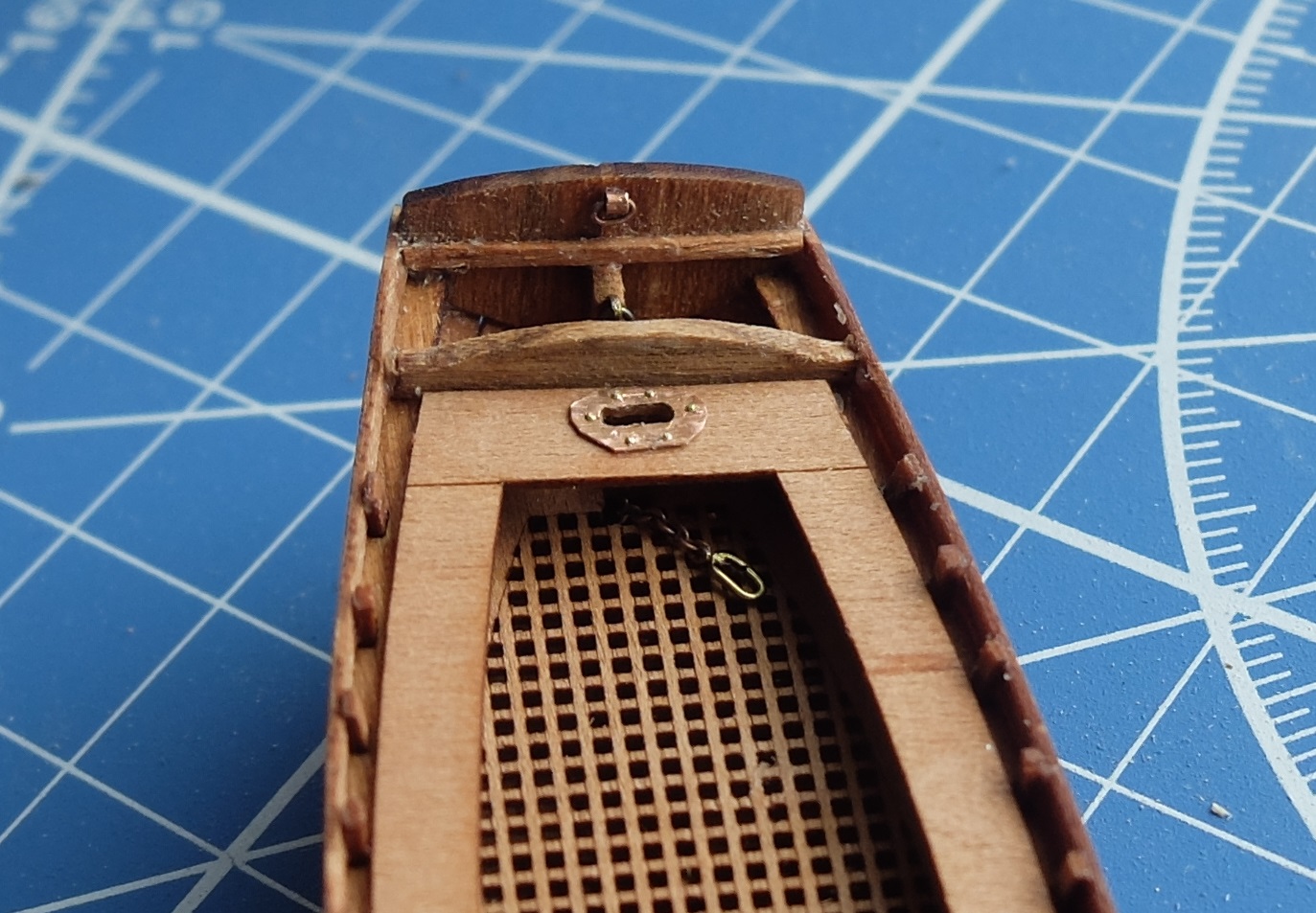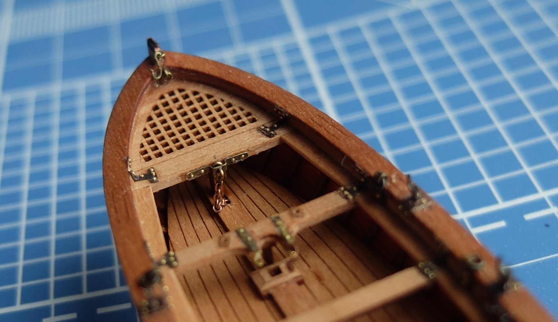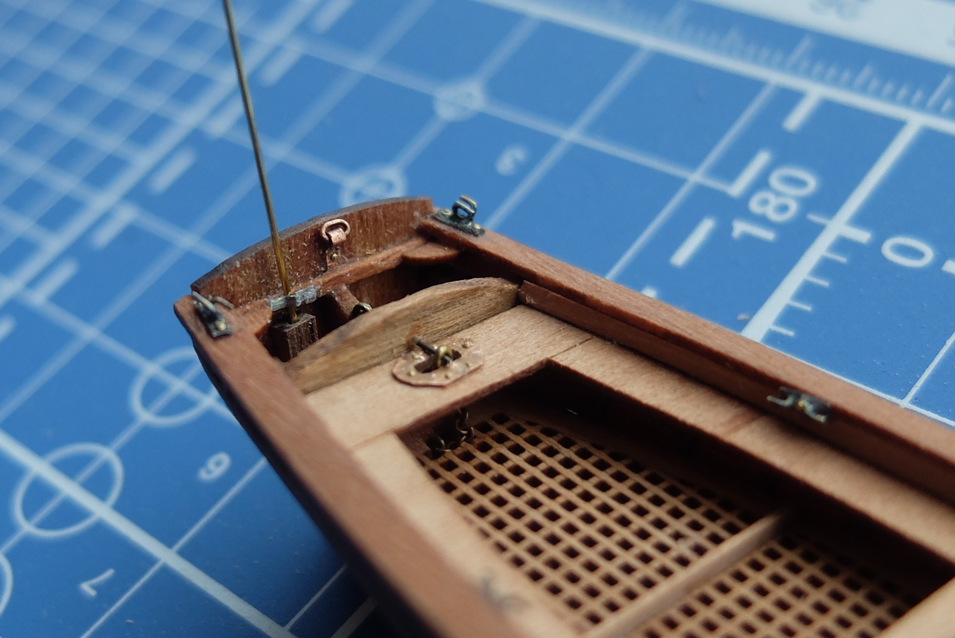 добавил уключины. гвоздики не чернил чтобы не сливались с деталями. это на макросъемке их так видно, а на модели только через увеличительное стекло.
