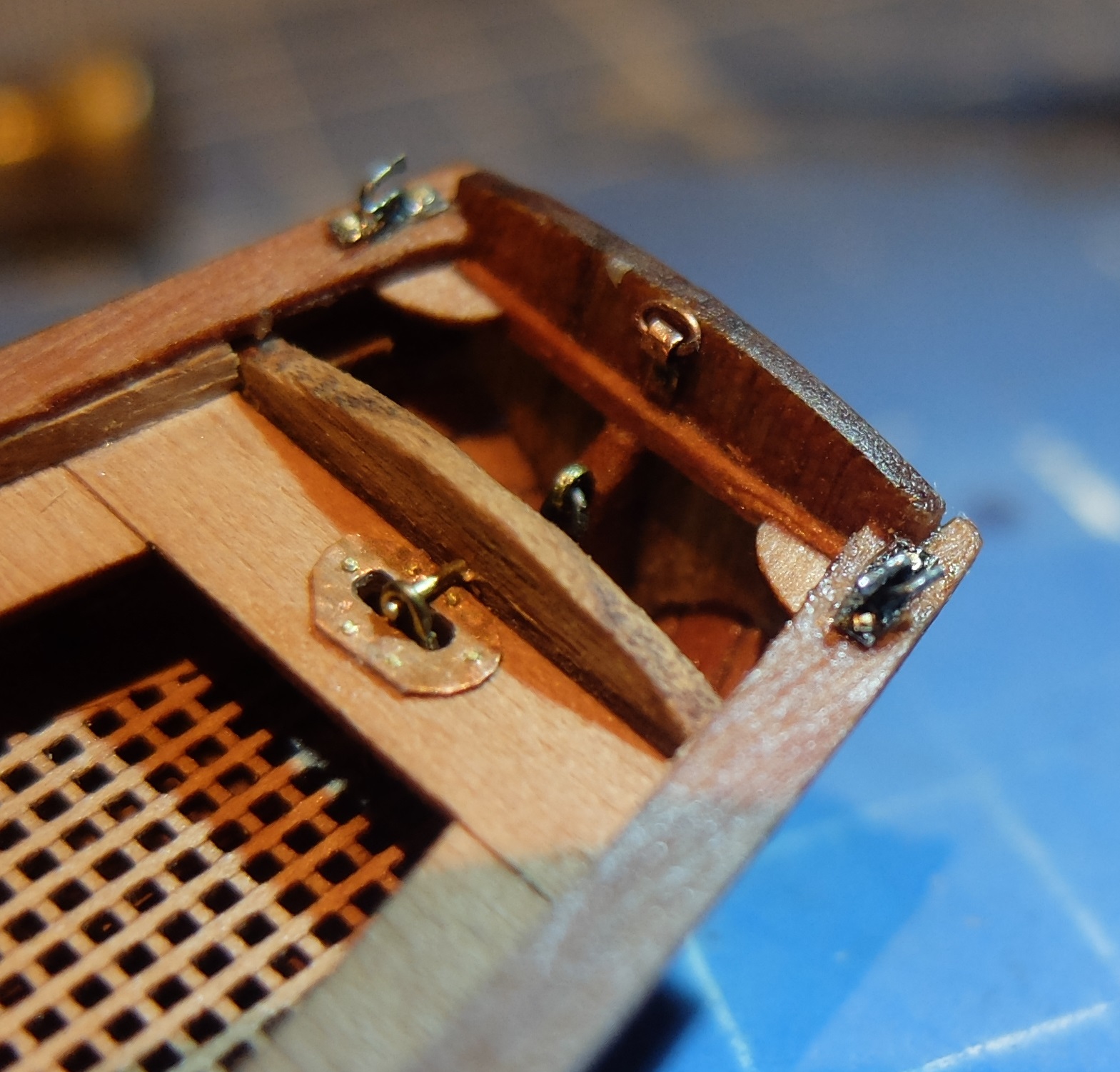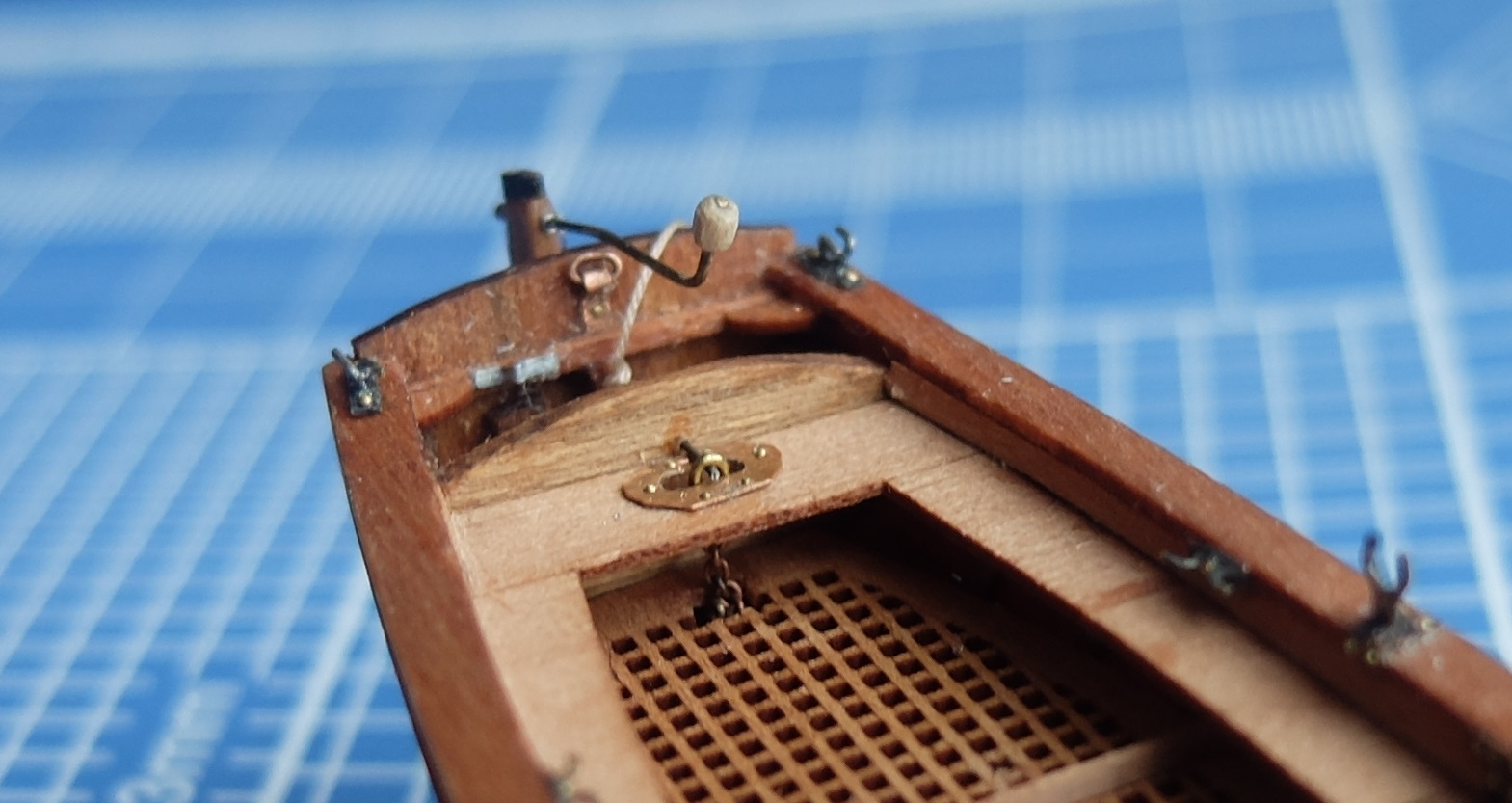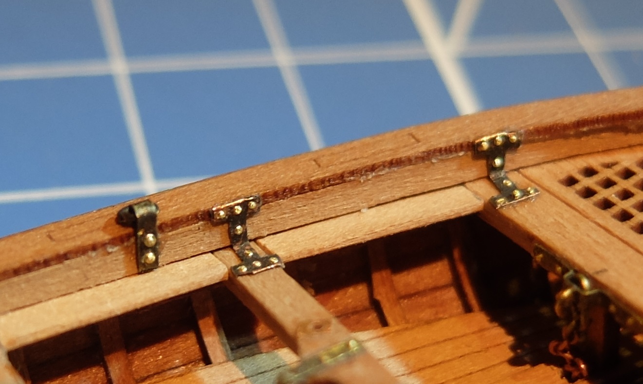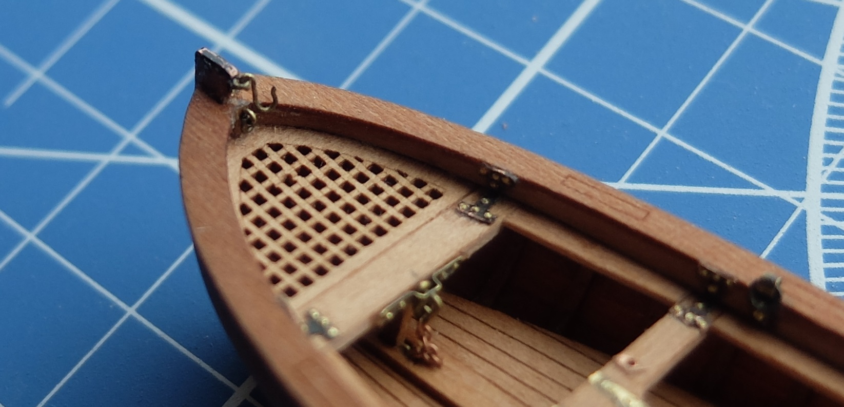 добавил уключины. гвоздики не чернил чтобы не сливались с деталями. это на макросъемке их так видно, а на модели только через увеличительное стекло.