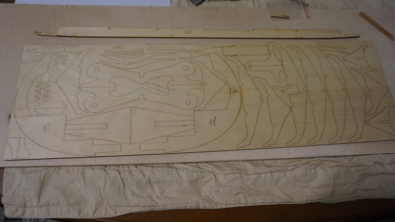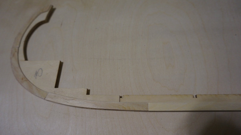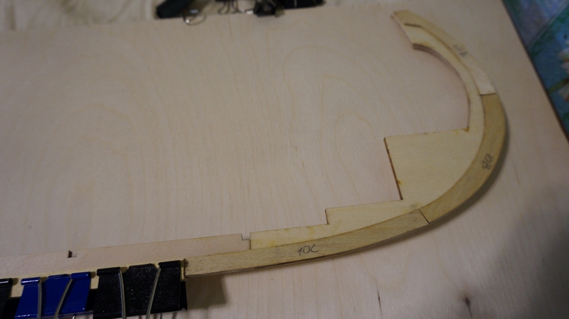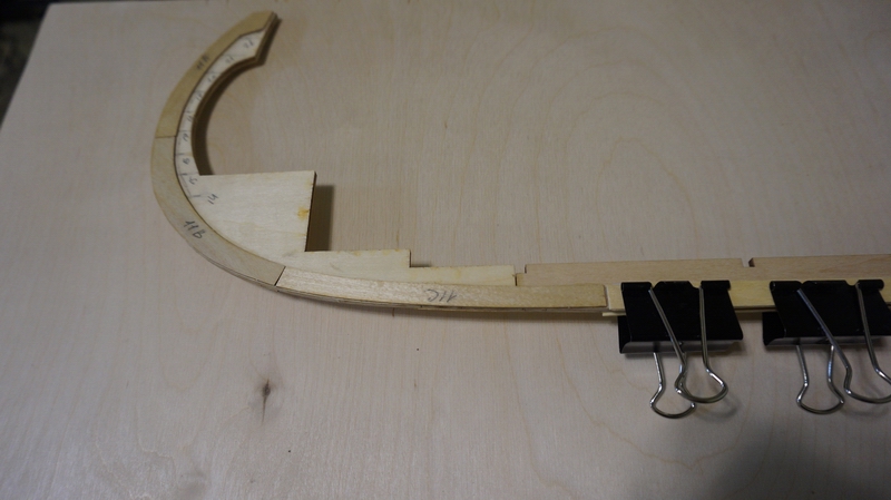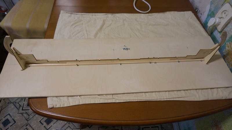 Заложил киль модели. В силу большого размера модели он составной. Из трех частей. Но особых проблем не возникло. Единственное на что нужно обратить внимание - наличие достаточно большой и ровной поверхности необходимой для склеивания данной детали. Так же в отличие от Amati порадовало наличие зачатков более продвинутого конструктива киля. Ну там киль, кильсон и прочее. Благодаря этому, в перспективе, укладка краев обшивки, примыкающих к килю, должна быть немного попроще