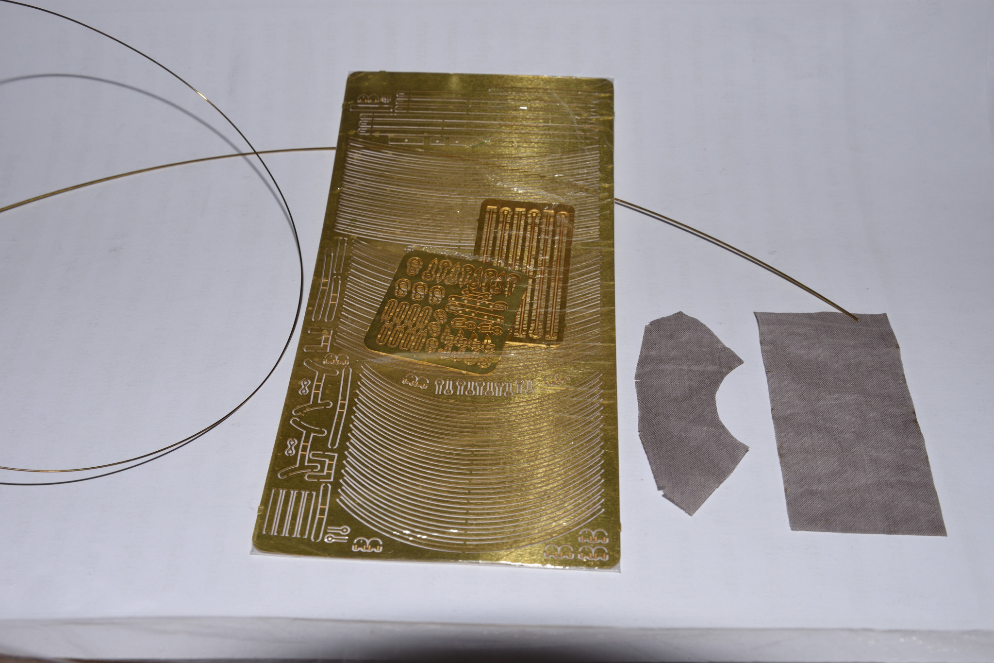 Понравились детали. Клеванты (6 мм длиной) - точеные, Карл! Брюканец дан выкроенным, для совсем ленивых. Цепочка вполне масштабная. Нормальные блоки, само собой. Шпиль и якорь смоляные, под покраску, а не под немедленный выброс, как у китайцев. Нет дурацких китайских фонариков. Для паруса дана самая тонкая перкаль — тоже одобряю. В общем-то, даже нитки не особо позорные, хотя их бы подкрасить.