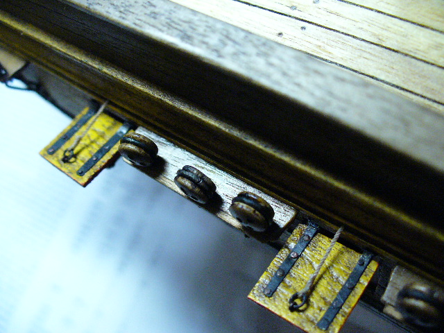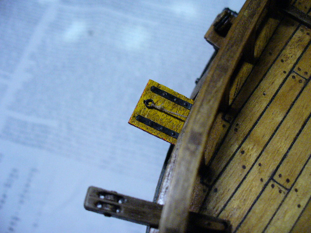 Вот моя вариация на тему петель для пушечных портов (Мамолевское литье не в какие ворота не лезли):