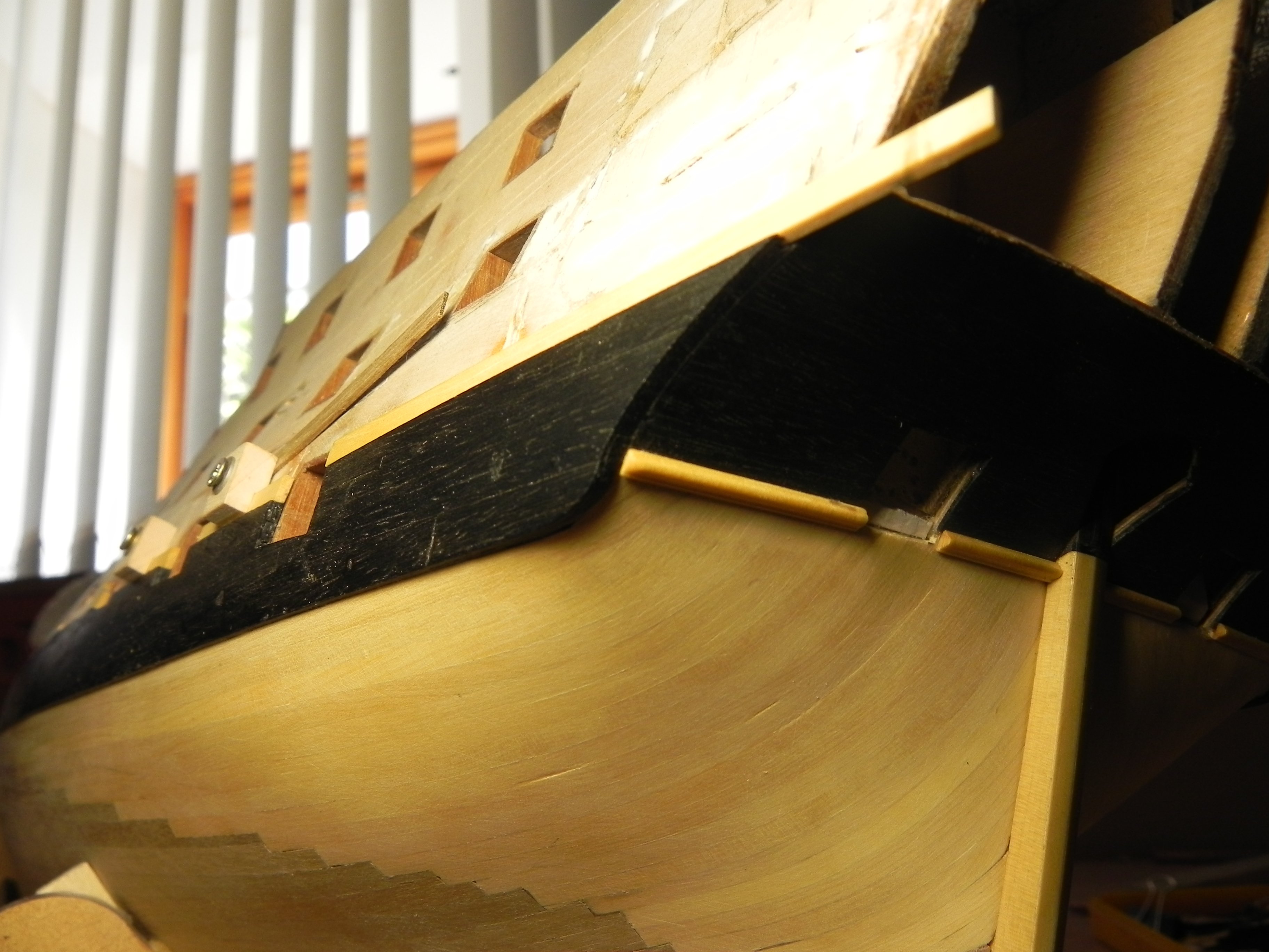 В крайнем случае, если финальный вид не по душе, то никогда не поздно подкрасить торец рейки (тушь, краска). Самшит плотный, впитывать краситель не должен, так что вид сбоку не пострадает.