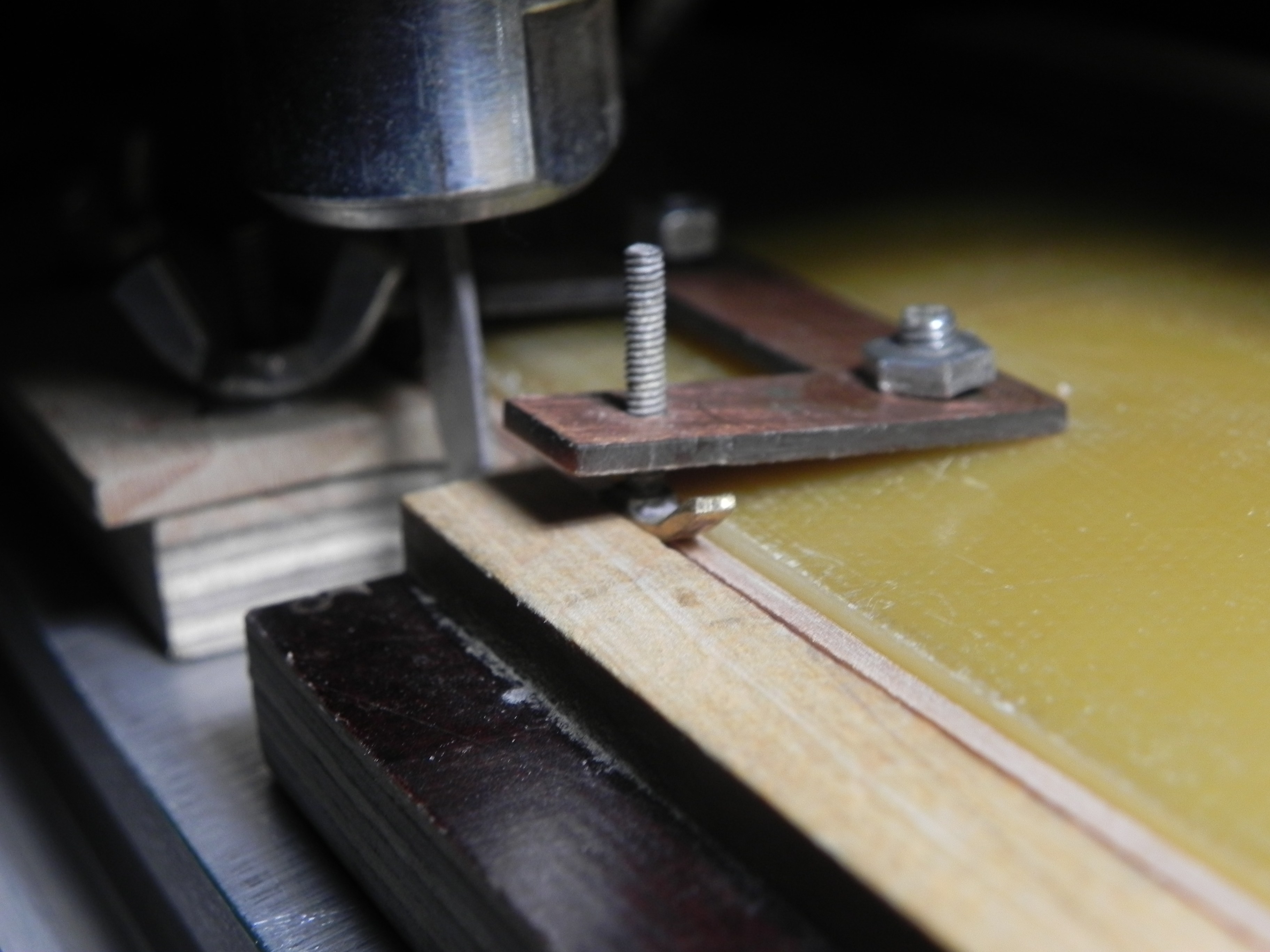 Андрей, я на этой приспособе многое делаю. Рейки калибрую после циркулярки. Не получается сразу точно пилить, да еще самшит, а тем более эбен плохо пилятся, сечется кромка. Даже у Бибигона и то бывает. Чем она удобна, рейка прижимается со всех сторон, люфта нет,а значит и нет волны на рейке. Рисунок выходит чистый. Правда делаю много заходов, не беру сразу много.
