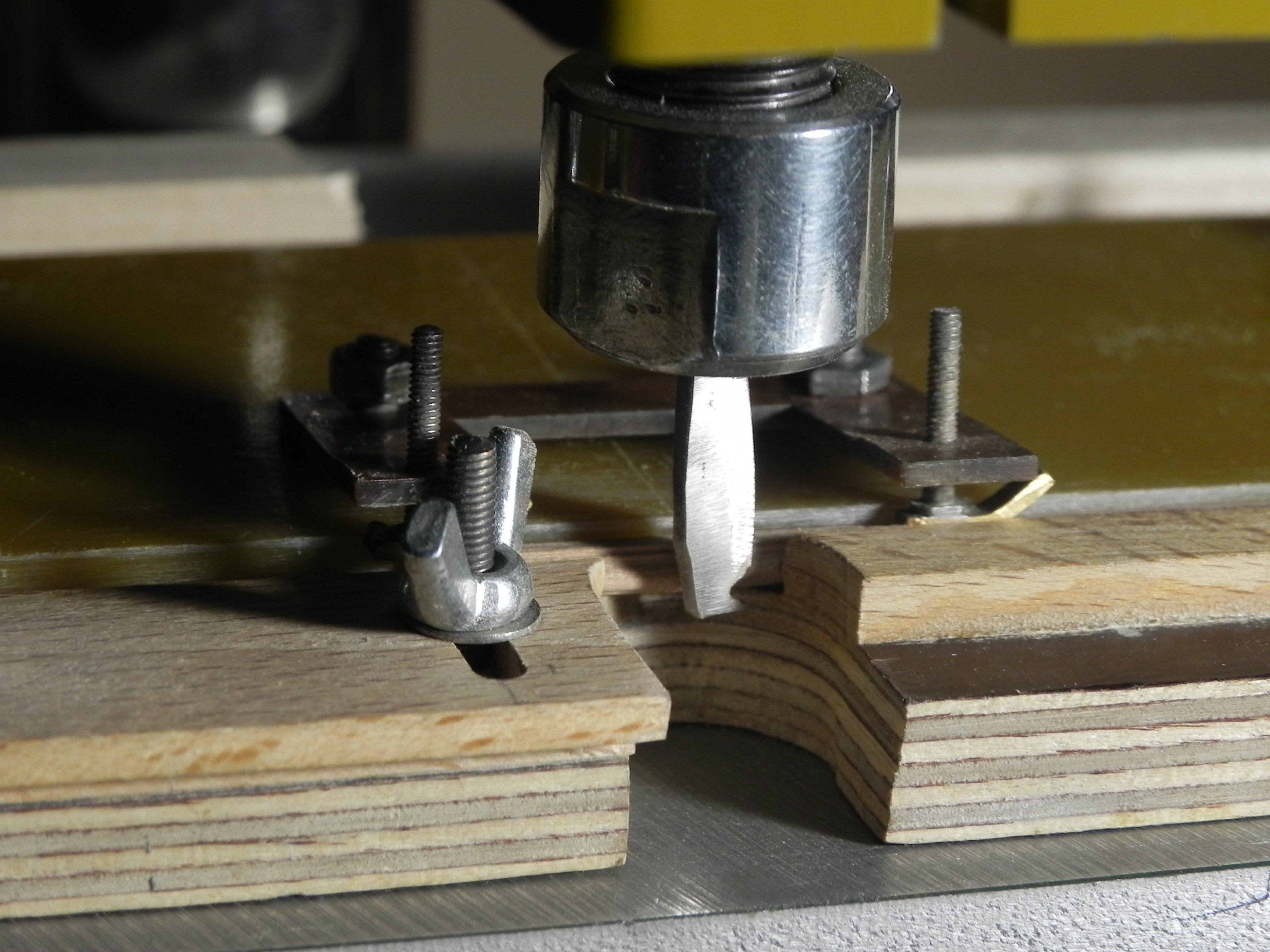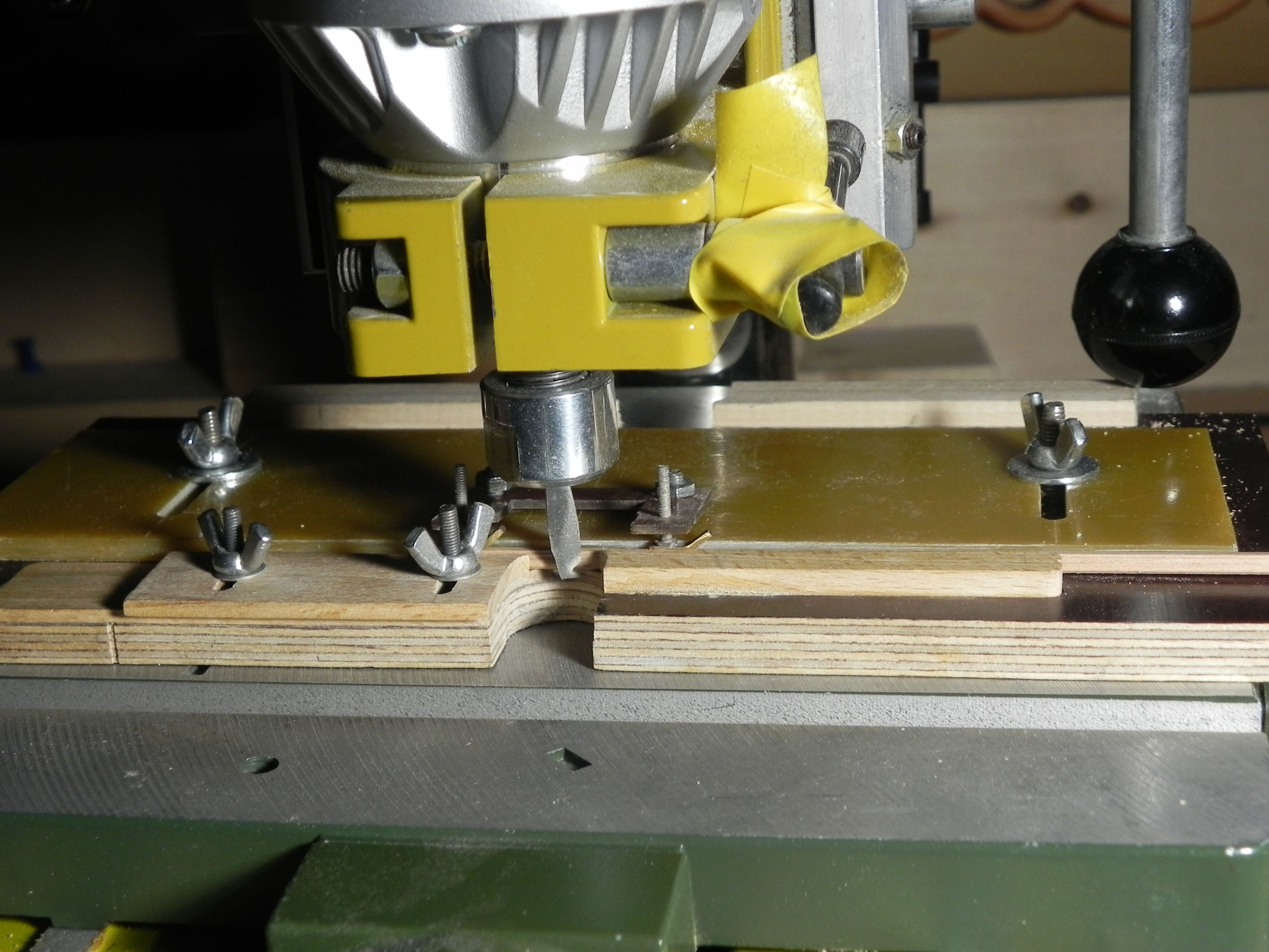 Добрый вечер. Подошло время сделать фигурный реельс. Давно делал приспособление для обработки реек. И в размер удобно вгонять , и фаски снимать, и для этого дела подходит. Что-то фотографии не четкие. Смысл должно быть понятен.