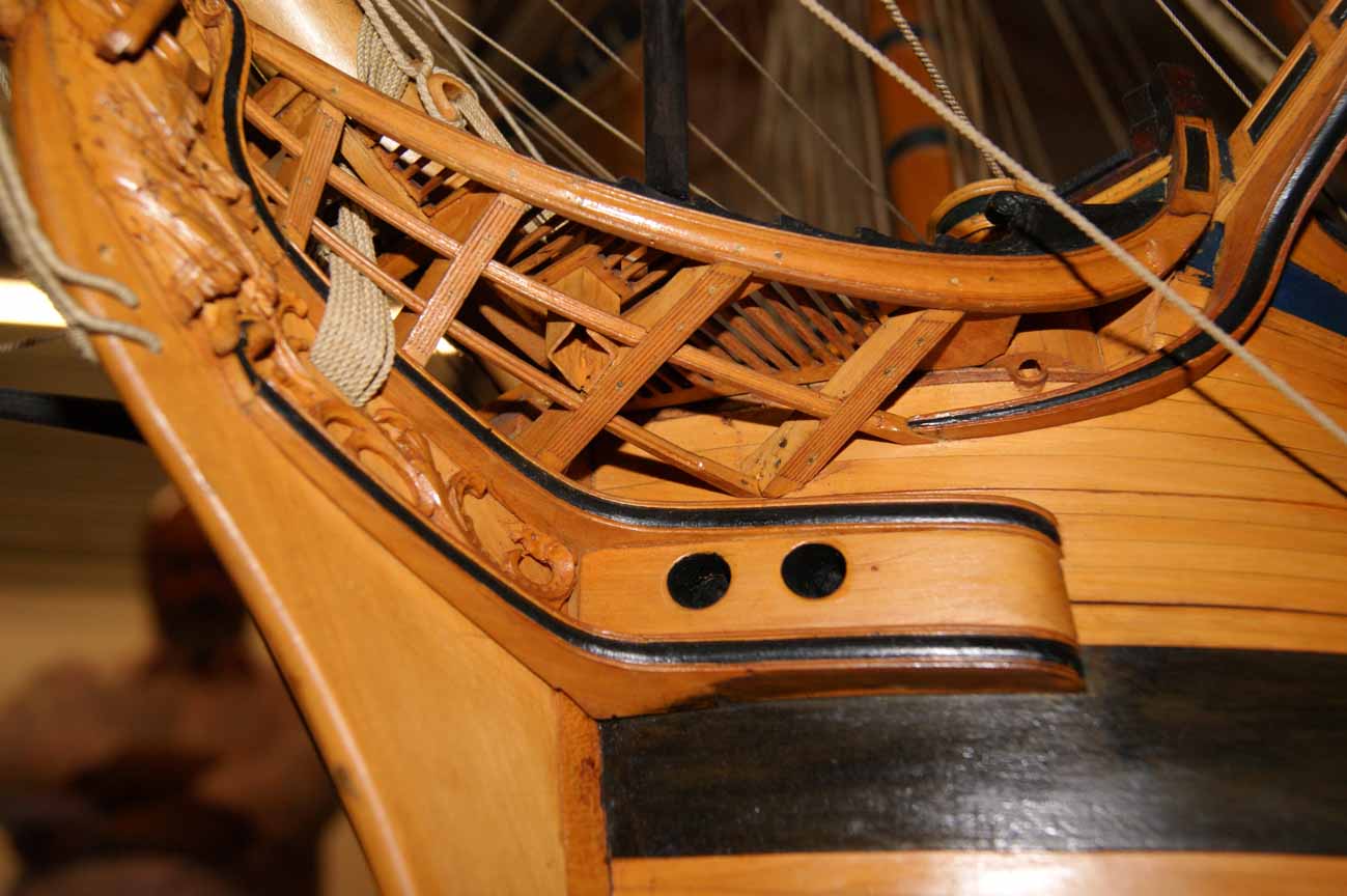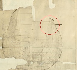 Если изгиб шпангоута в этом месте исправить согласно чертежу из Анатомии, то изгиб и будет таким, как на фотографии оригинальной модели Томаса Слейда. И, конечно же, вест-реельс не пойдёт винтом.