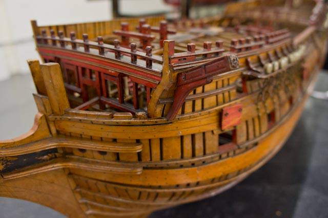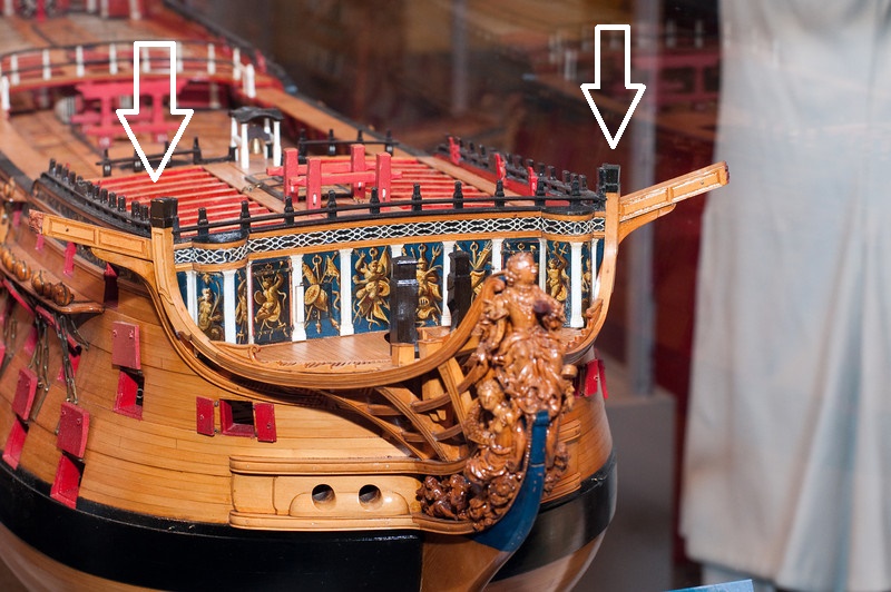 Насколько высокий дрифт бака, можно судить по другим, отличным от Беллоны, моделям. Если снаружи корпуса наш глаз сбивается о реельсы, руслени и прочее, то изнутри высота фальшборта заметна очень хорошо. Только, Миша, я прошу учесть, что у Беллоны на музейных моделях самый высокий фальшборт бака из всех систершипов, у других моделей высота отличается.