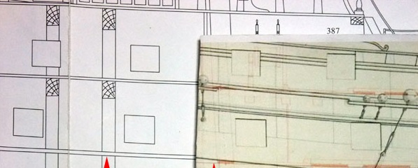 С носа - только у первых двух пушечных портов опердека есть крышки (там располагался корабельный лазарет), а у третьего и тд пушечных портов крышек нет, кроме кормы: крышки должны быть у четырёх последних портов (а не шести). Там находились разборные каюты офицеров и мичманов. Для ориентира - крышки на пушечных портах опердека на корме начинаются с того порта, который находится под так называемой фордунной скамеечкой за грота-русленем.