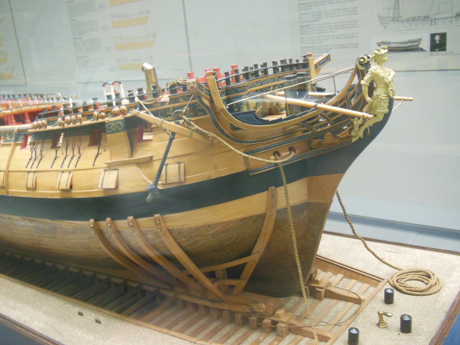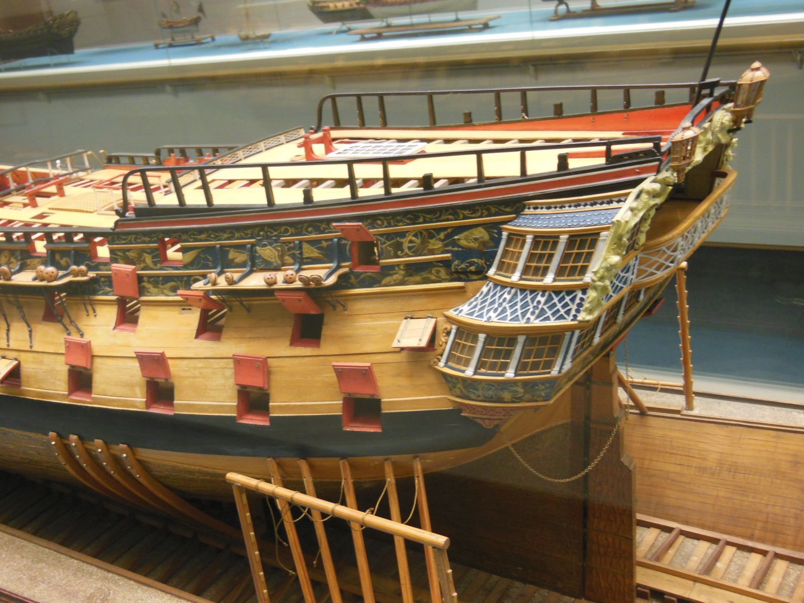 С седловатостью и погибью палуб у модели всё в порядке. Равно как и с расположением пушечных портов. Как я уже писал, еще несколько лет назад я предположил, что, судя по основным измерениям и расположению элементов, модель явно сделана по чертежу корабля Эдгар, с оглядкой на общий "рентген"-чертёж для класса Аррогант.