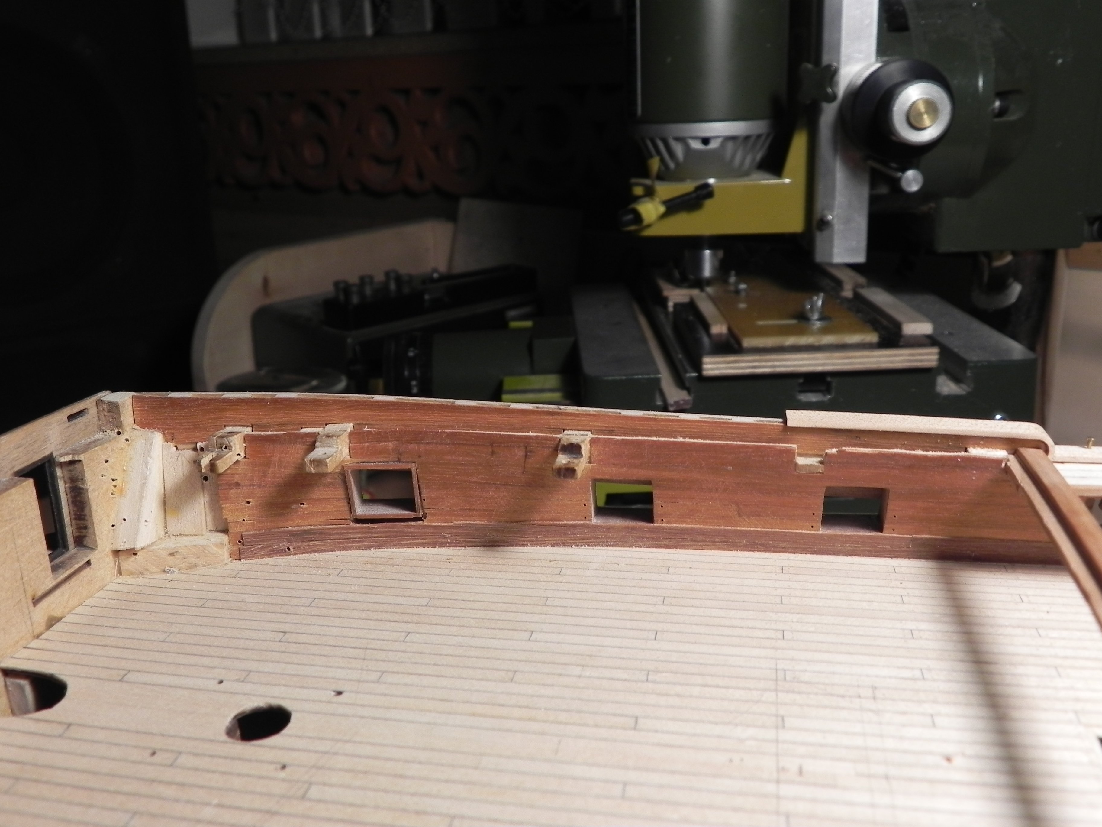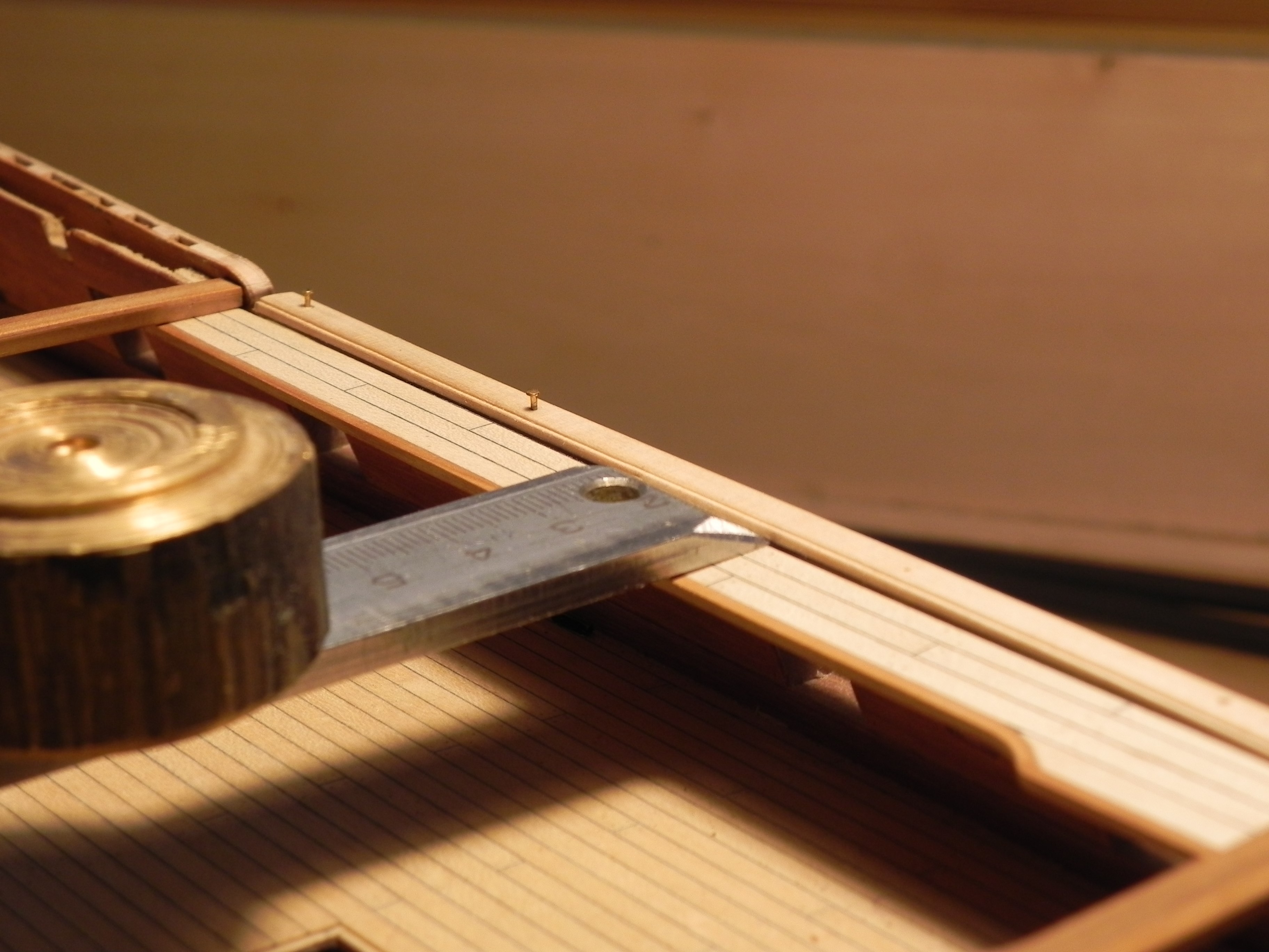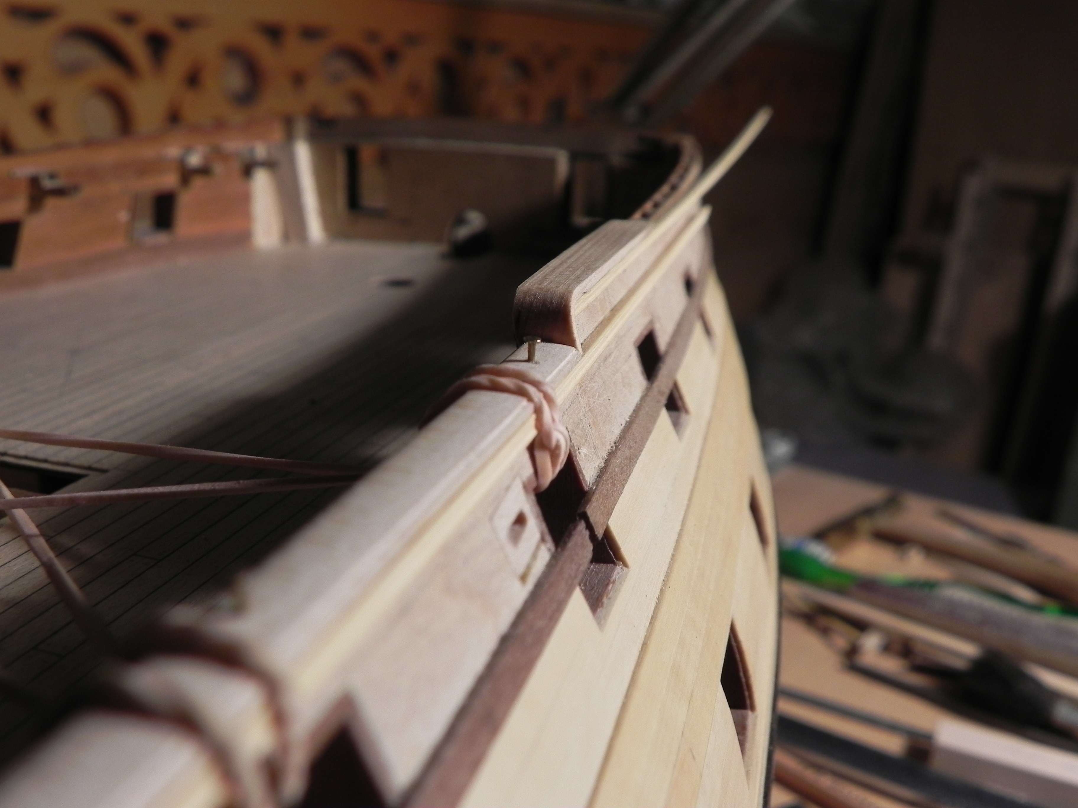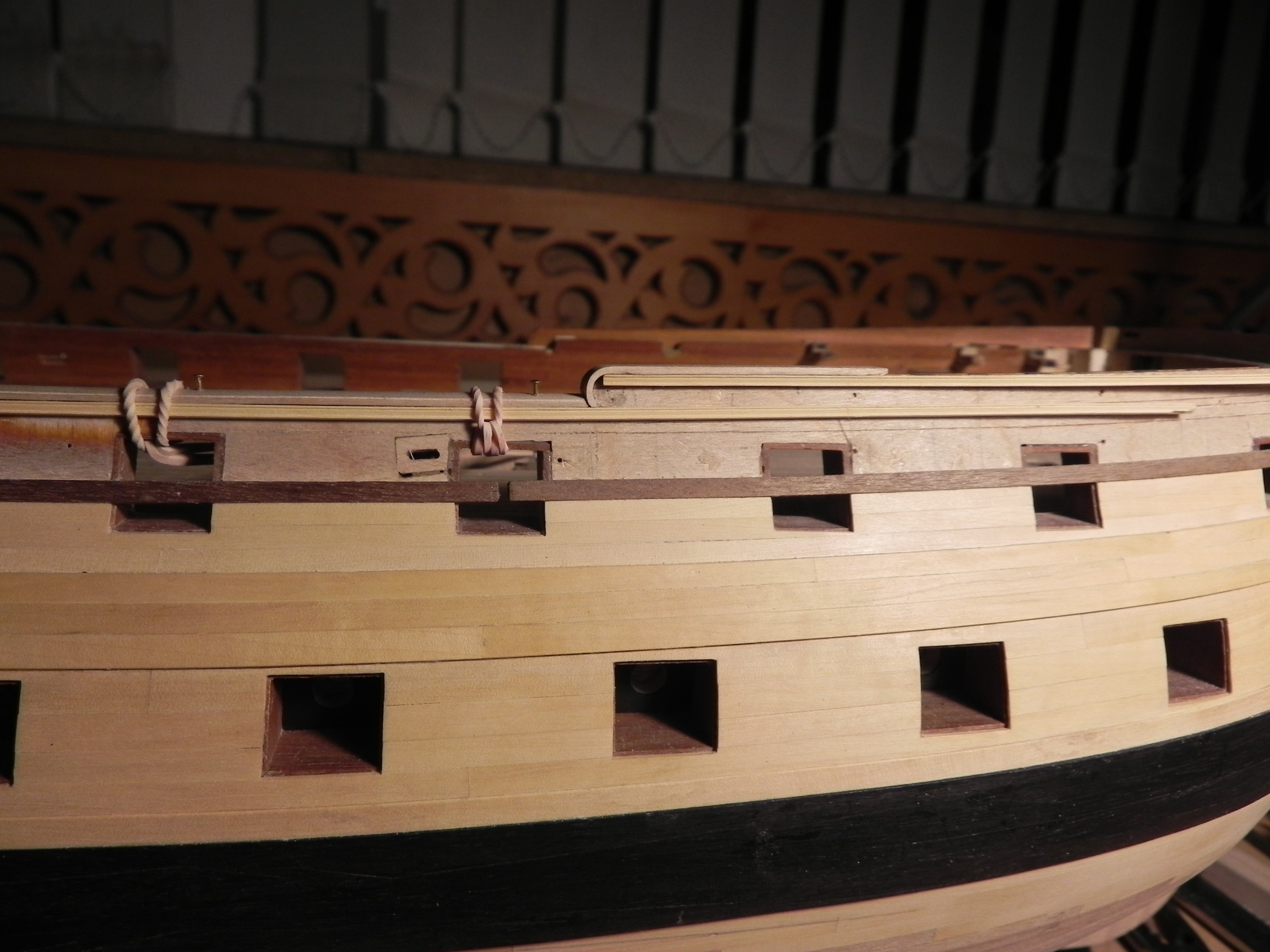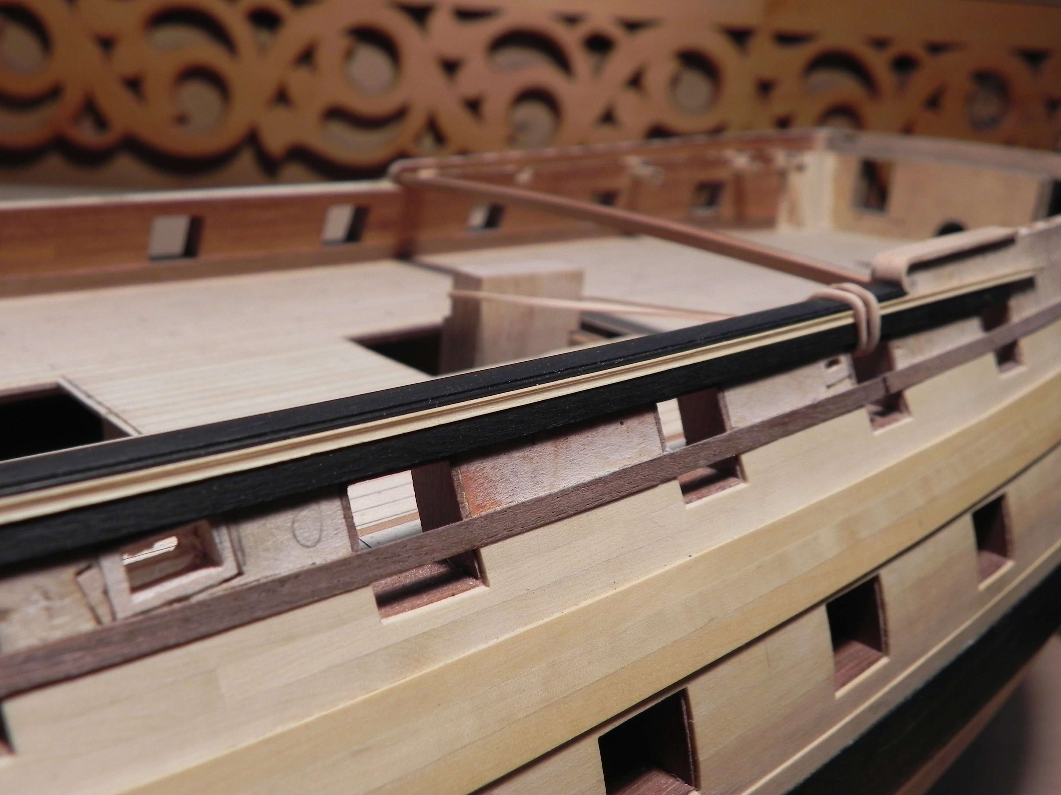 Миша, добрый вечер! Покажи, пожалуйста, если нетрудно, ещё ракурсы фальшборта бака (и желательно квартердека) "изнутри", я хочу посмотреть высоту ф-бортов относительно палуб надстроек у тебя. Что касается размеров реельсов, то чисто визуально смотрится так: размер ты подобрал как раз тот. Возьму себе на заметку.
