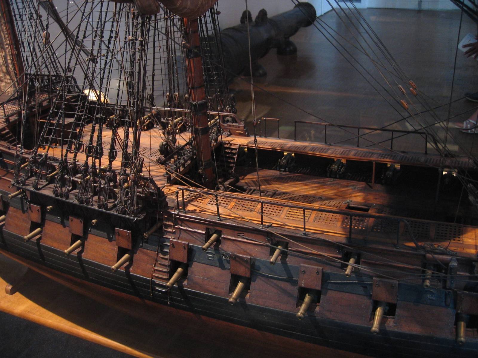 Крышки пушечных портов ЧАСТО (но не всегда) отсутствовали на открытых палубах в виду их бесполезности - от воды в шторм крышка не защитит открытую палубу. В тех местах, где на открытой палубе были помещения (например, на опердеке, под палубами надстроек бака и квартердека), крышки пушечных портов присутствовали, чтобы защитить именно помещения. Но. В холодное время года верхнюю палубу можно было закрыть всю, создав комфортное место обитания, в том числе закрывались и пушечные порты, у которых в обычное время крышек нет. Как правило, корабль находился в порту, на зимовке.