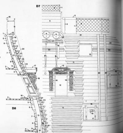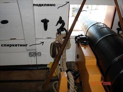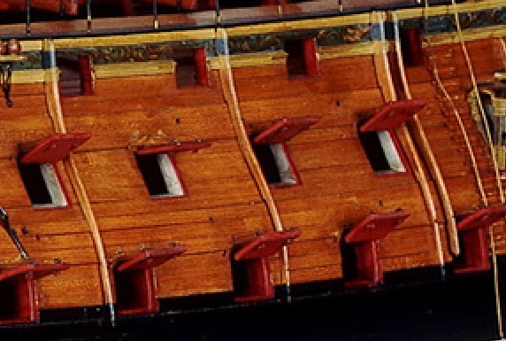 Внутренняя часть обшивки пушечного порта меньше размера самого порта на величину косяка порта, не закрытую внешней обшивкой. Это обеспечивало плотное прилегание крышки к порту в закрытом состоянии (на верхней фотке не совсем верно показана внутренняя обшивка порта).