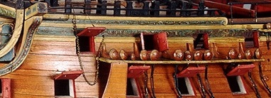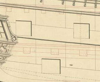 Миша, конечно же, вы немного ошиблись! Вертикальные стенки портов являются шпангоутами и практически всегда вертикальны. А вот верхний и нижний косяки портов параллельны палубе, а палуба имеет седловатость, поэтому не прямоугольная, а слегка ромбообразная форма пушечных портов заметна по краям корпуса.