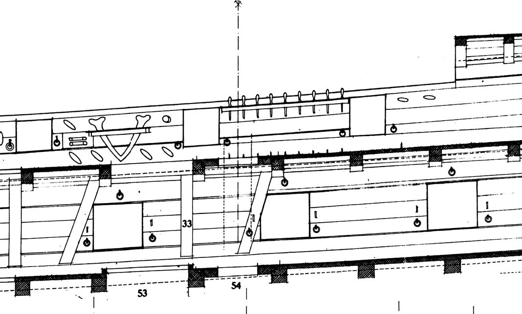 Пётр, обрати внимание, на нижних фото, это опердек, и у портов нет крышек. Не эти ли узкие рейки для оргстекла нарисовал потом МакКей на чертеже Вики, в том числе и Пандоры... я не знаю.