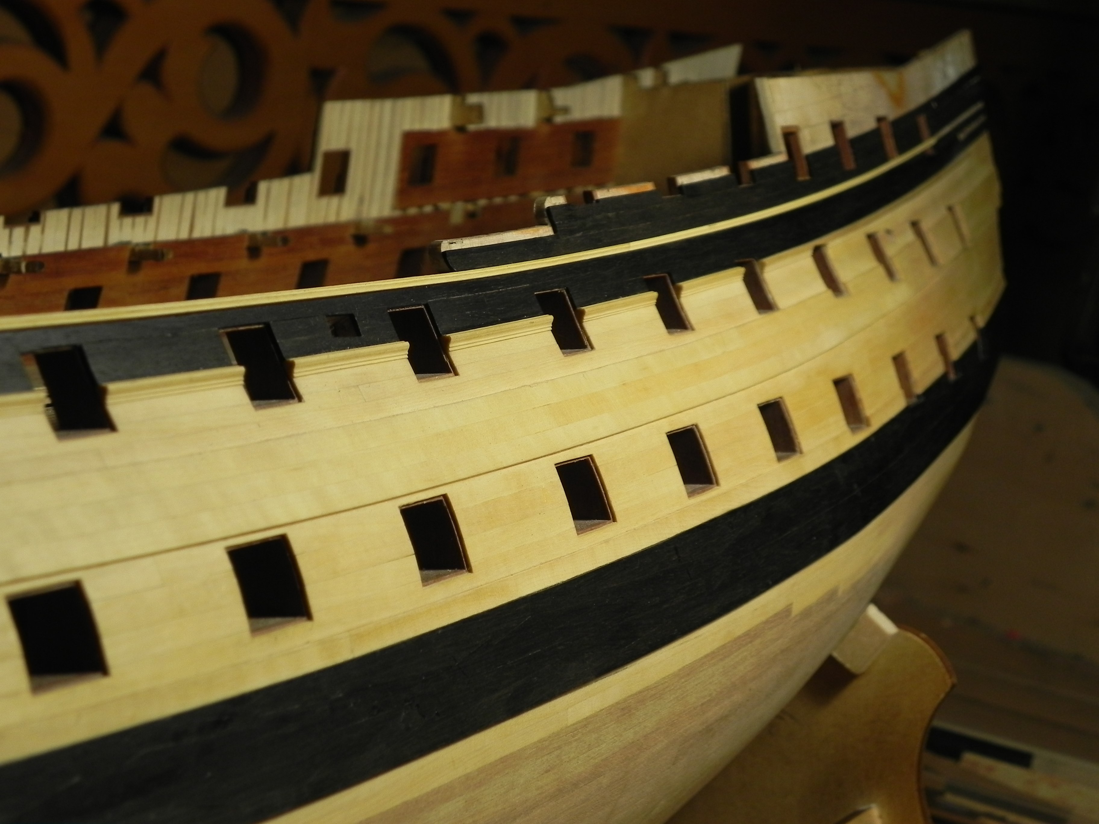 Миша, за текстуру не переживайте, все планшири на модели будут закрыты или фиф-реельсами (а их, как и другие "перила", можно сделать из любимого эбена), или нительсами (стойками коечных сеток).