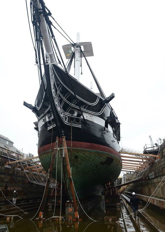 Отдельная песня про кормовой торец пера руля. Дело в том, что на фотографии пера руля Виктори отчётливо видно, что торцевые пластины сделаны так же, как на форштевне: края загнуты на боковины пера, и... вот тут выявляется странность: загнутая часть у некоторых пластин закрывается сверху "боковыми" пластинами, всё нормально. Но часть пластин - наоборот, закрывает собой боковые пластины, они положены поверх боковых пластин! - то есть, вопреки правилу рыбьей чешуи. Почему так, не спрашивайте: не знаю. Мало того, что здесь зона завихрения воды, которая порой в шторм вызывала вибрацию и даже разрушение руля, так здесь с 80х годов англичане делали противотурбулентные желобки - до 1800х годов, пока в принципе не поменялась форма пера... А у Вики перо старое. Могу предположить, мол, ремонт, восстановление утерянных пластин. А вот пластины, закрывающие петли, вообще положены от балды, явно из остатков/обрезков.