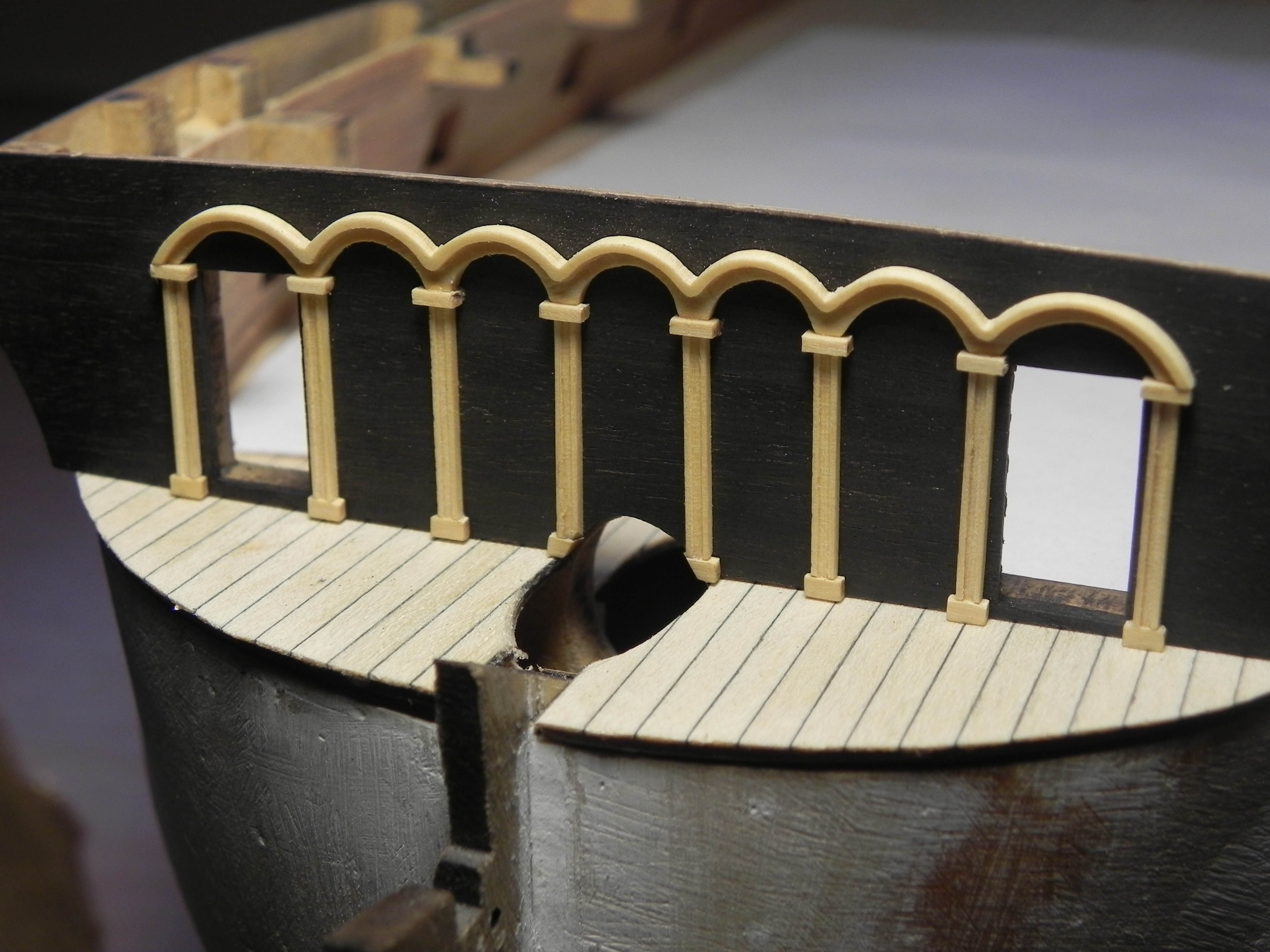 Добрый день, Вольф. У меня еще смешнее вышло и только дня два как обнаружил, почему пушки не проходили. Еще осенью, до изготовления пушек стал обшивать внутренюю часть пушечной палубы. И Естественно рейки закрыли часть портов. Нижнюю часть я сразу спилил и, видимо взялся за что-то другое и эабыл.  Вставляю пушки ,а они не проходят. Я и до этого хотел их другие сделать., и по цвету вроде темноваты, и колеса показались узкими, ну и переделал.Жалко время много ушло, но зато опыта прибавилось.