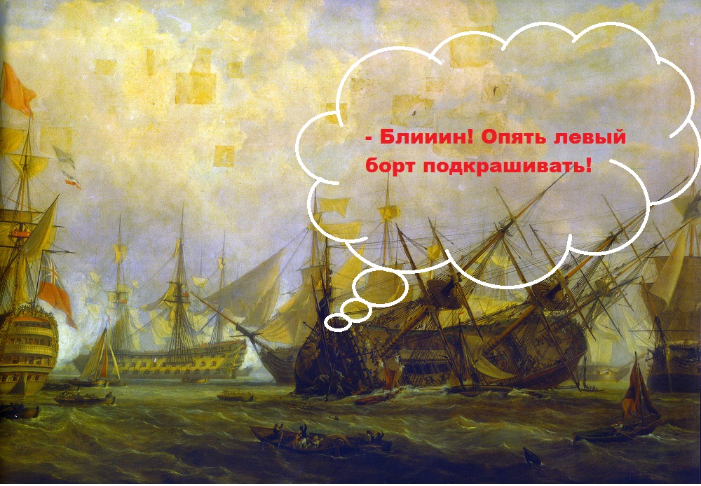 И не важно, бочка ли, пушка ли, лапа якоря - все элементы корпуса красились, ну, а поцарапали краску - на борту всегда был запас красок. За погрузочно-разгрузочные работы отвечал боцман и вахтенный офицер. Думаю, решить проблему скола краски не так уж и сложно данным товарищам, не правда ли. Или мы не на Флоте, и сопли жевать будем, а, юнги? Чего рты раскрыли, плетей давно не получали...