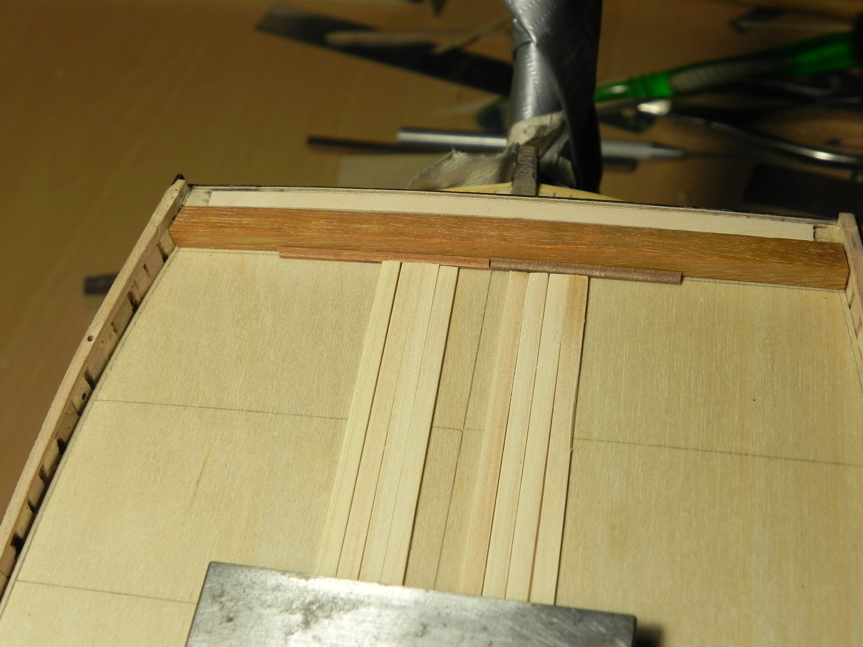 Спасибо, Игорь. Как я понял ватервейс становился почти одинакового цвета с палубой. Значит его так же надо делать из клена или чуть темнее. У меня лафеты пушек сделаны из яблони. Попробую сделать образец на пробу. Покажу.