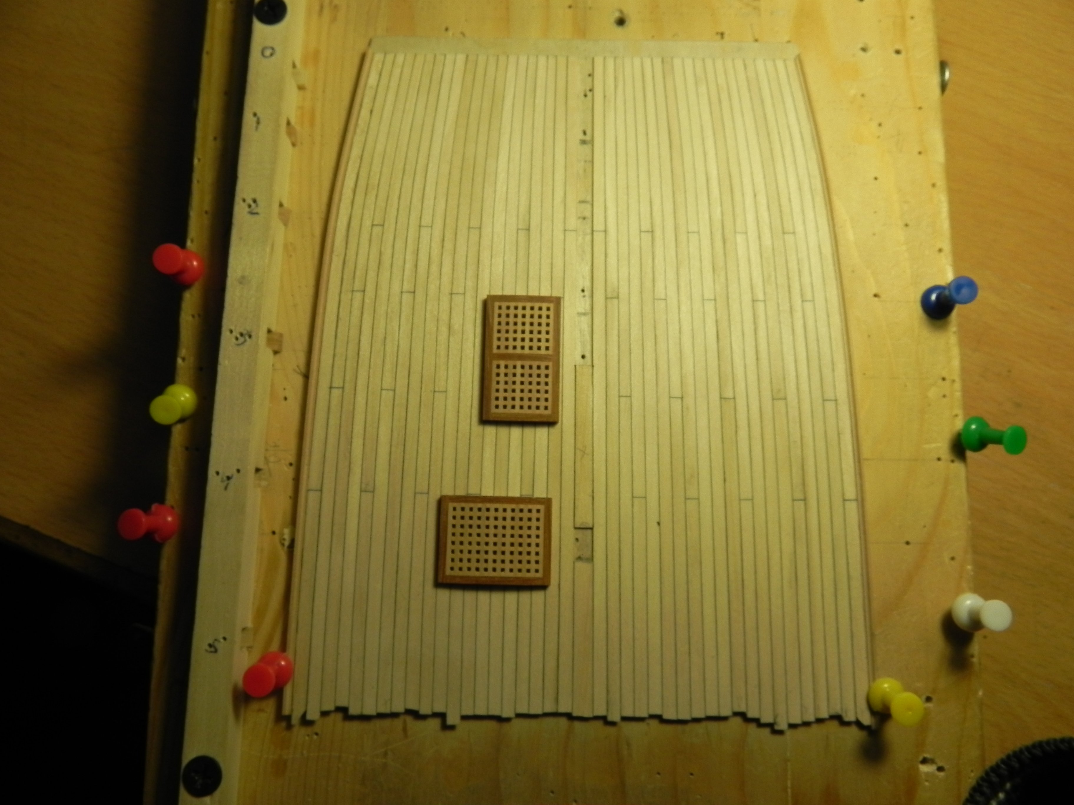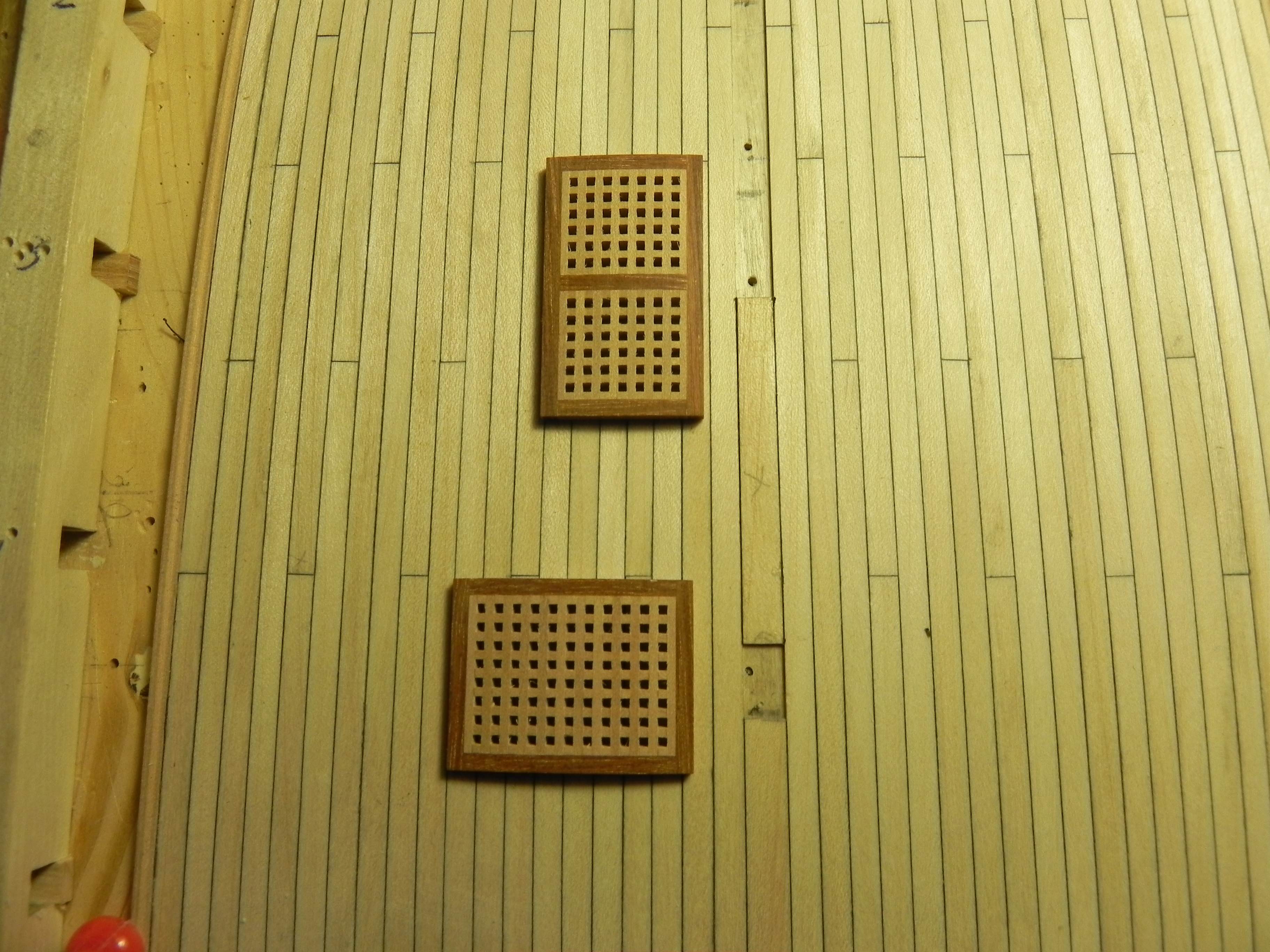 Как закончу палубу, прикинем, как лягут решетки относительно досок, может что изменим. Видите, и на этих фото решетки как бы просто положили сверху. Конечно, по хорошему сначала бы сделать комингсы, а потом обрамить досками.