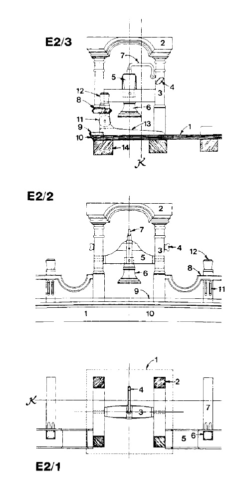 Миша, вот тебе ещё немножечко картинок в помощь: прорисовка крепления колокола к качалке-противовесу, правильный чертёж колокольни без размерных линий, ну, и фото, конечно:
