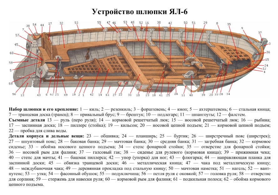На всякий случай, я повторю: ширстрек, буртики, подширстрековый пояс – эти поясья относятся к внешней обшивке шлюпки и видны с наружной части борта; подлегарс и привальный брус находятся внутри корпуса шлюпки и видны с внутренней части борта.