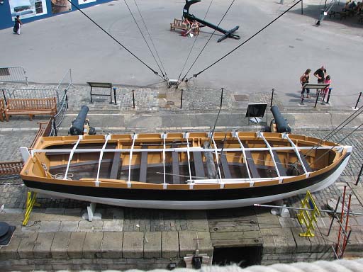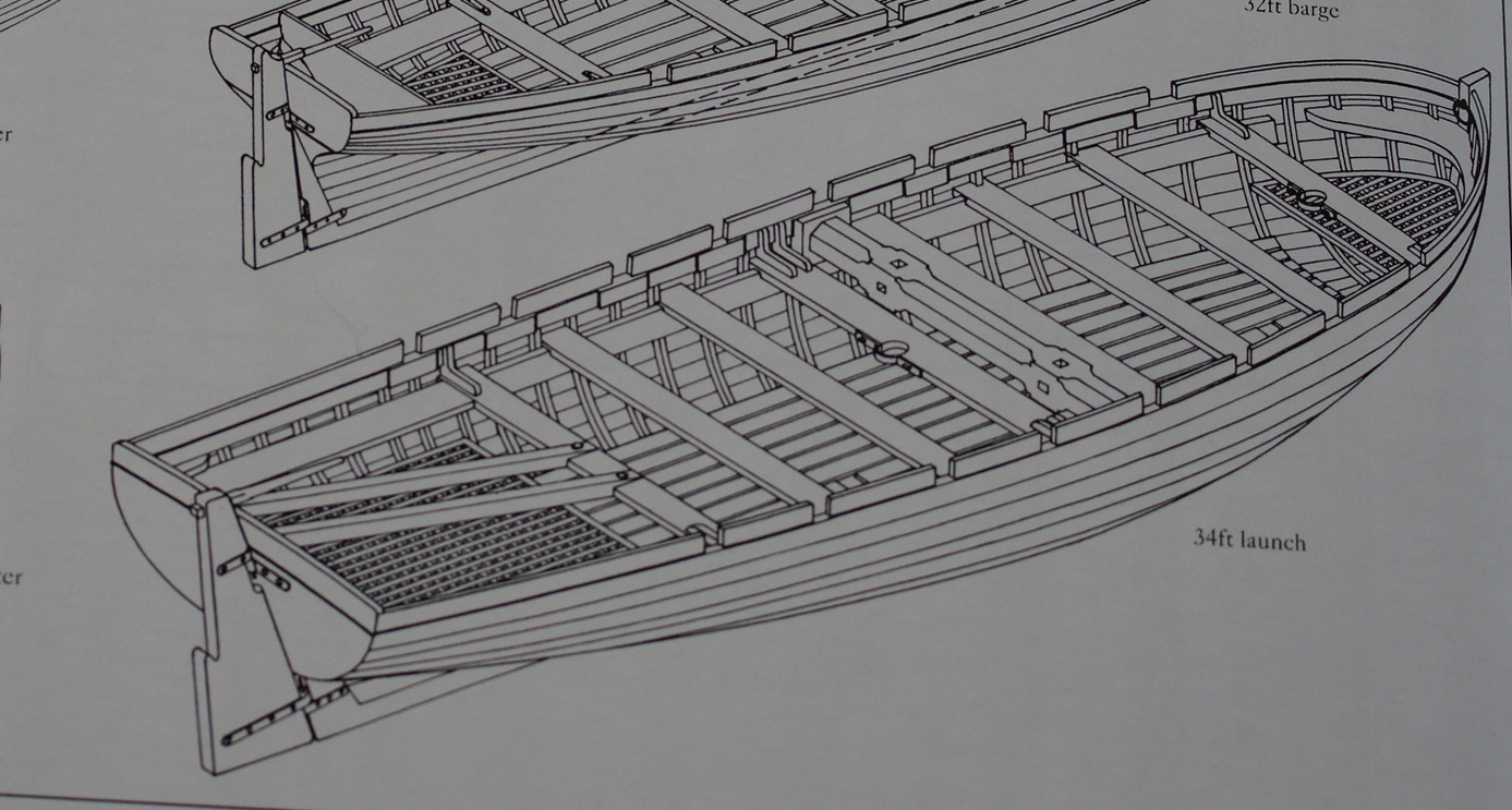 Фотографии 34-ф баркаса Виктори: обратите внимание на полнтоу корпуса, из-за которой дейдвуд не обшит досками обшивки, чертёж 34-ф баркаса есть в Анатомии Беллоны), посмотрите так же поздний 34-ф барказ с диагональной обшивкой;