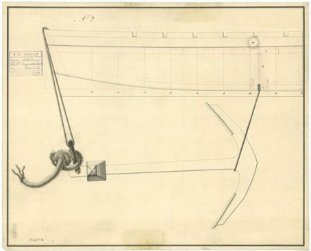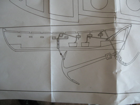 В завершение темы баркасов надо упомянуть рымы для подъема шлюпок на борт корабля. Обычно рымы, в количестве четырёх, ставились в кильсон, стем и в старнпост, но лучше сверяться с расположением рымов - их хорошо видно на некоторых чертежах. Любители супердеталировки так же не должны забывать про рым в оголовке стема: сюда ввязывали буксирный трос, когда баркас буксировали за кораблём. Возможно, этот рым мог пригодиться, когда при завозке якоря усилий гребцов было недостаточно, и баркас брали на буксир одним или двумя катерами, или другими шлюпками. Сразу отмечу, что в литературе также указывают альтернативный способ, когда буксирный трос привязывали к первой банке коровьим узлом.