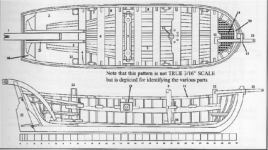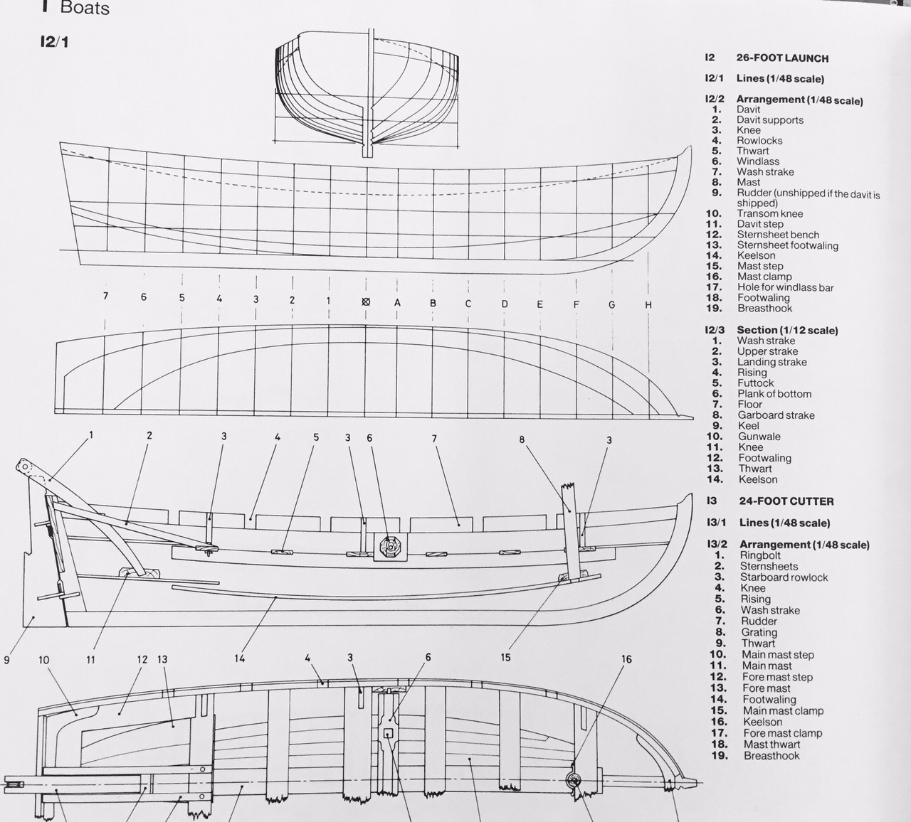 Далее идут данные сразу и для 34-футовых, и для 31-футовых баркасов (-зов), потому что совпадают. Итак, если никак не указано, дальнейшие цифры подходят и для моделистов, строящих 31-ф, и для моделистов, строящих 34-ф: