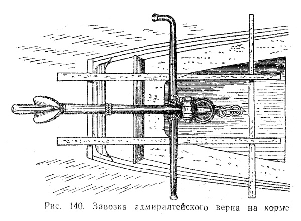Для верпования, или для фертоинга, якорь завозили в нужное место баркасом. При этом якорь, подвешенный к баркасу, находился под водой, чтобы архимедова сила компенсировала его вес. Когда же якорь из-за мелководья невозможно было перевезти баркасом под водой, его перевозили на борту баркаса, и суппорты брали на себя часть нагрузки. Якорь рей-талями грузили на баркас в район пассажирских сидений разными способами, например, веретеном поперёк ДП шлюпки, веретеном вдоль ДП шлюпки. При этом веретено якоря лежало либо между суппортами, либо поперёк них. В обоих случаях суппорты, как полозья, помогали сбросить якорь с баркаса: якорь съезжал по ним либо веретеном, либо лапами. Сбрасывали якорь в нужном месте с баркаса вручную, и это была опасная работа, и выполняющие роль полозьев суппорты были очень кстати.