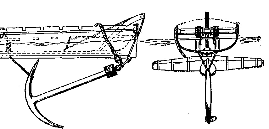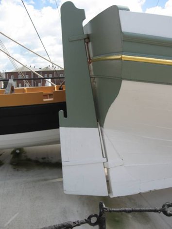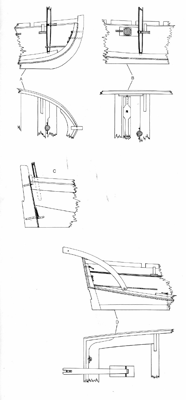 Обратите внимание, насколько сильно отличается подвеска рулей к транцам и старнпостам у настоящих шлюпок от предложенных фирмой Амати вариантов.