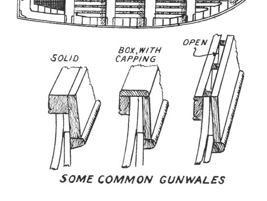 три вида конструкции кромки бортов английских шлюпок.
