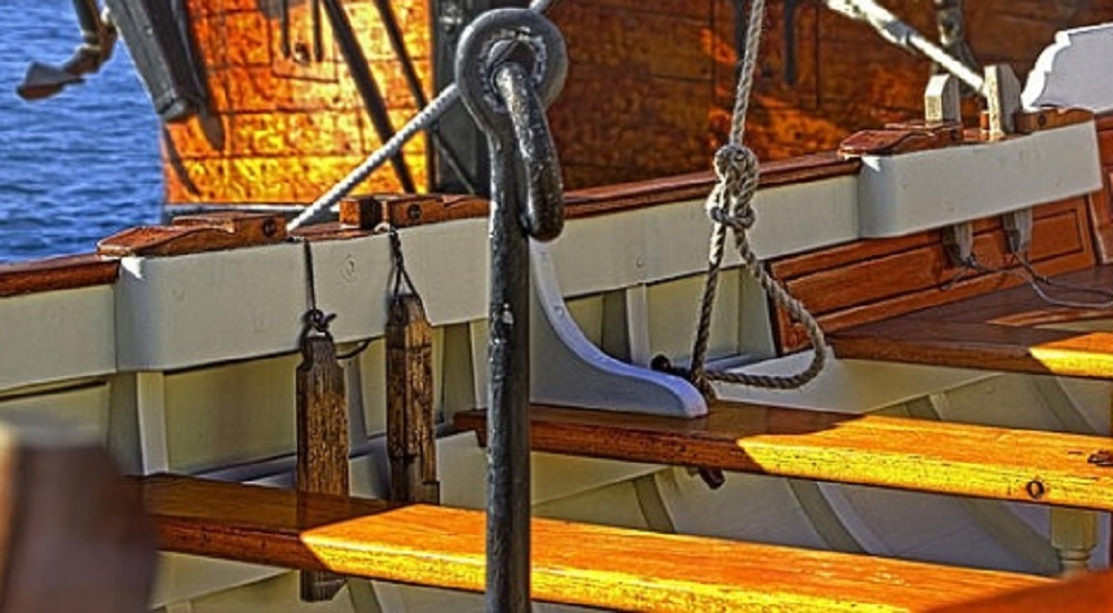 Ушки баркасов отличались от ушек других шлюпок. На левом ушке было расширение и проделанный в нём паз (паз называется шкивгат). Сюда вставлялся на ось роульс – небольшой шкив для работы с тросами и канатами. На правом ушке тоже был сделан небольшой наплыв, на котором размещалось металлическое кольцо, в которое вставлялся бушприт.