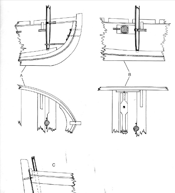 Промежуточные банки были съёмные и не имели книц, в банках могли быть проделаны пазы для шпангоутов.