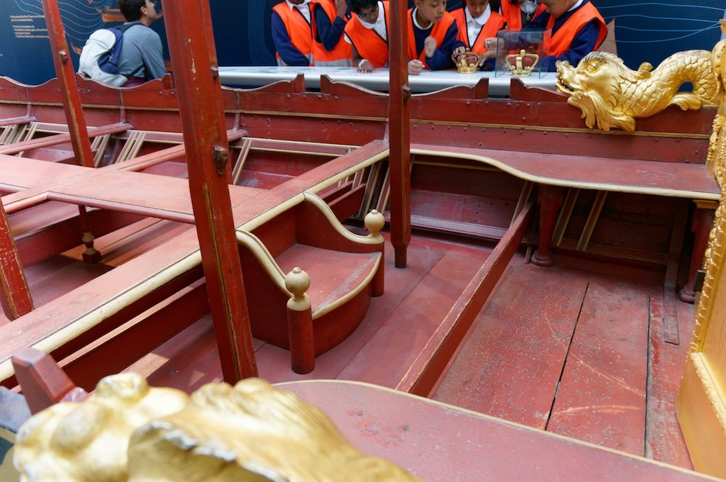 Ниже фотографии барки принца Фредерика, поясняющие некоторые элементы. У барки Фредерика не характерная для английских барок обшивка внакрой, отсутствует внутренняя обшивка ниже подлегарса, присутствует плоский полик в отделении гребцов, ковёр отсутствует, упоры для ног не стандартные для английских шлюпок, так же как и очень бедно оформленный внутренний фриз.