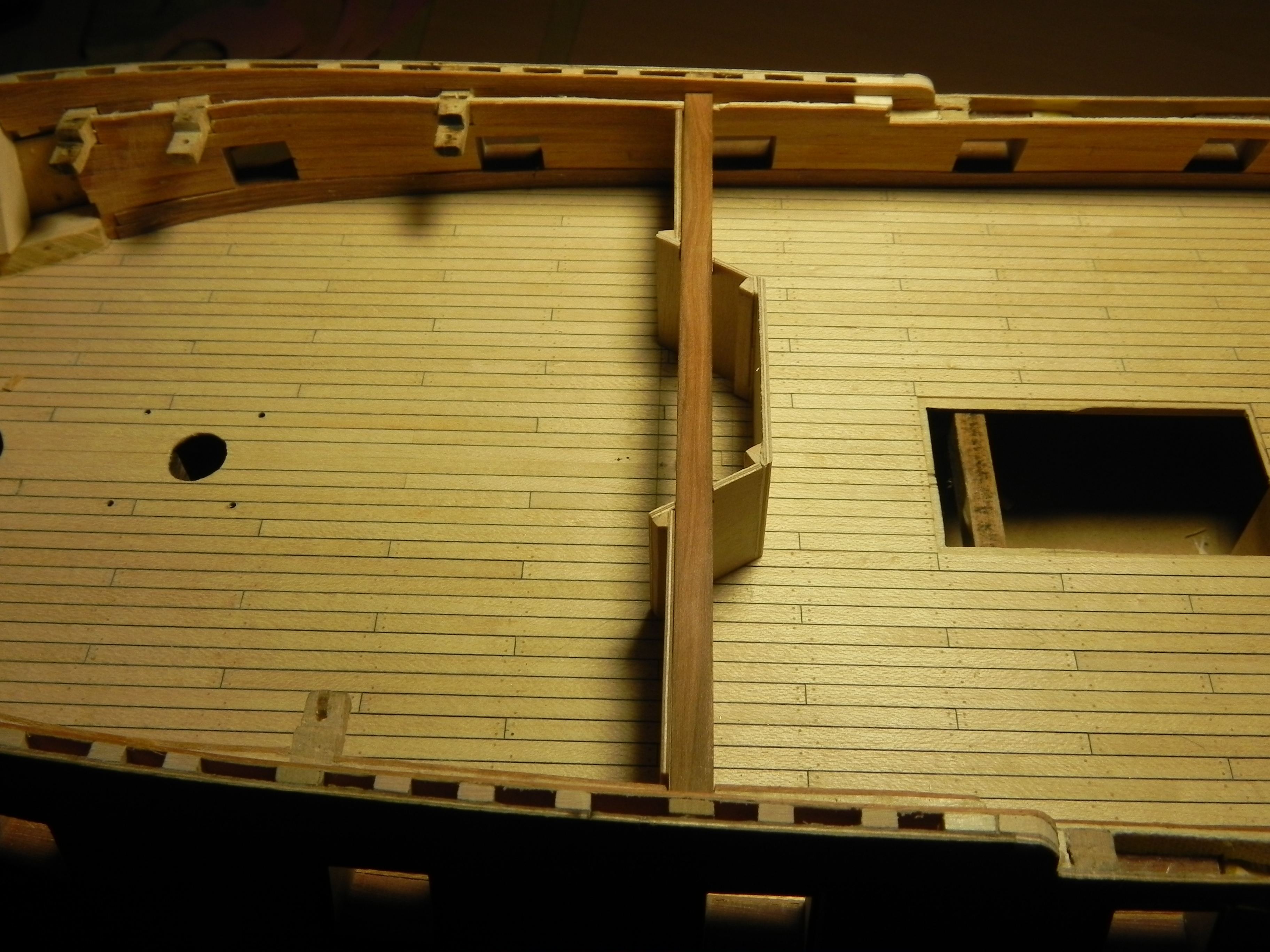 Добрый день! Миша, там, где вы едва разглядели, это Уорриор, вот, есть фото в лучшем ракурсе, третье сверху. Переборки однозначно прикреплены к ребру бимса. Ну, и, раз вы показываете фото заодно и переборок в корме, то там поперечные переборки все "привязаны" к бимсам, причём, даже на кораблях разных классов (на первом фото - не 74х-пушечник). Вот несколько фотографий кормовых переборок. Замечу, что продольные стенки действительно, убирались вовсе.
