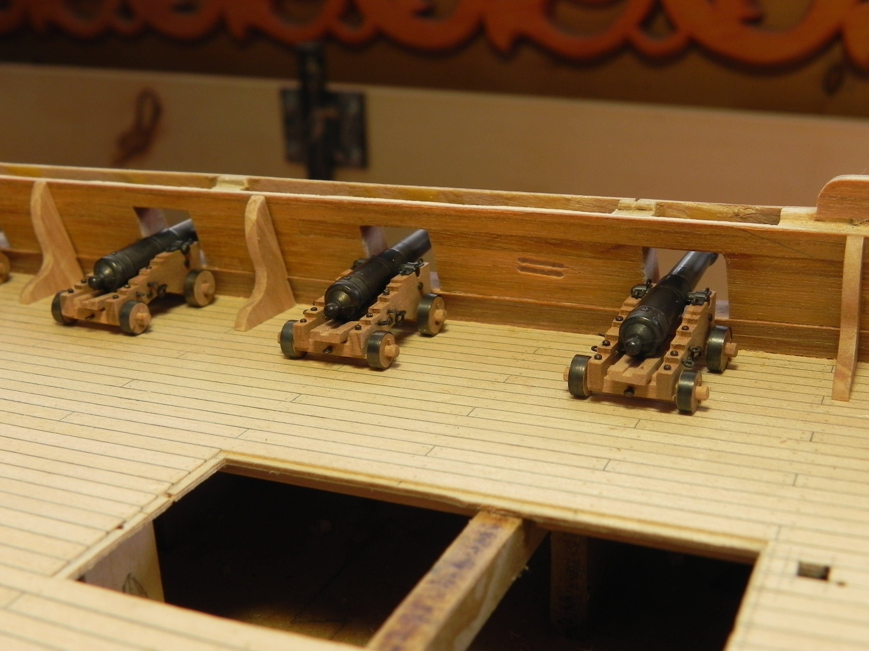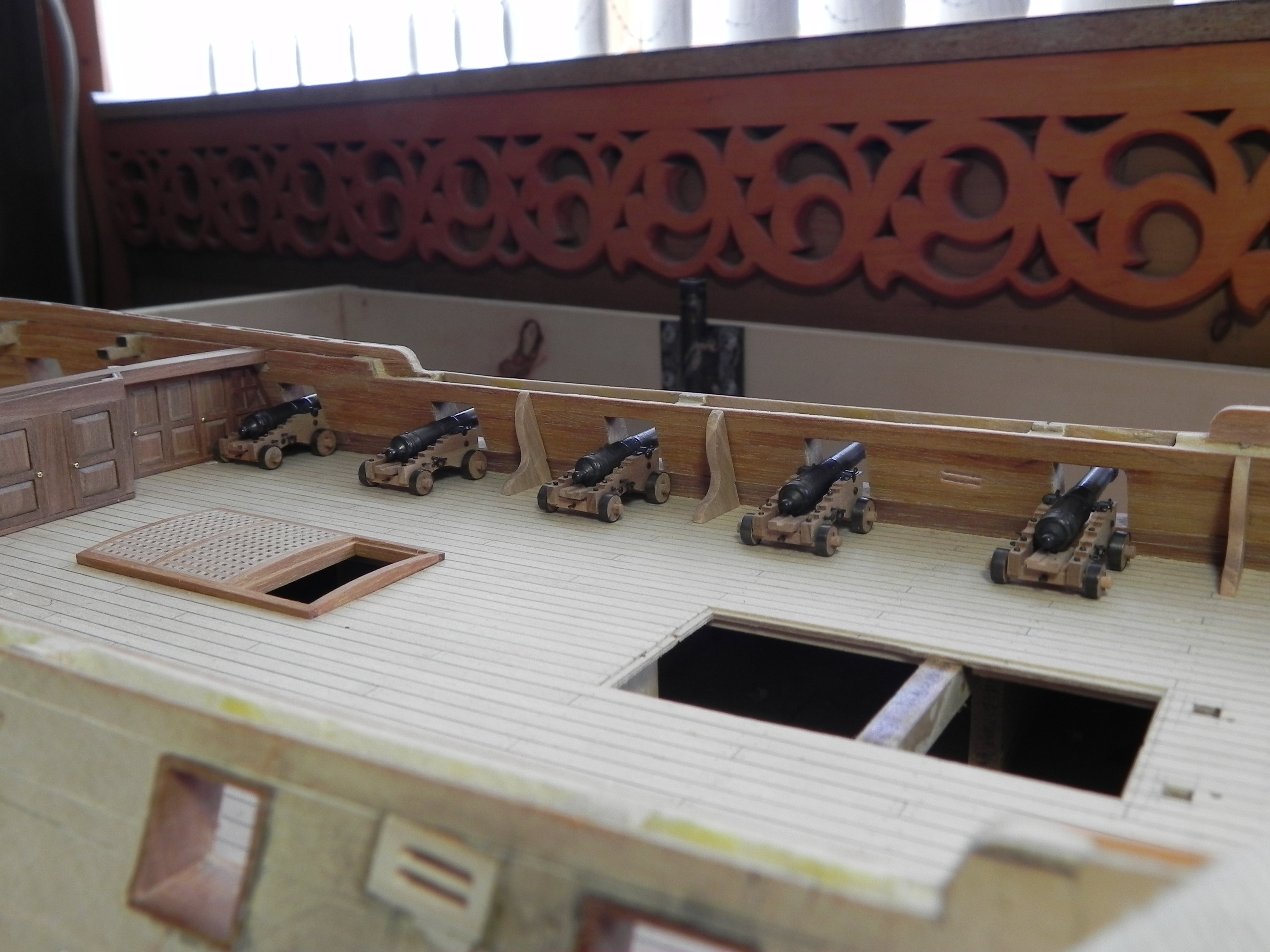 Игорь, спасибо. Про покрытие вообще еще не думал.До этого далеко. Первые пушки покрыты маслом OSMO с воском. Но я сделал другие( первые показались темными),а другие пока ничем не покрывал. Может палуба и пожелтеет, а яблоня очень хорошо смотрится. Но когда подойдет время, конечно буду советоваться и эксперементировать.