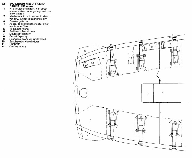 Миша, здравствуйте! Да, палуба опердека на модели простирается далеко, спасибо аматиевцам, придётся делать переборки. Сначала надо поставить, временно, бимсы квартердека, чтобы знать высоту переборок. В корме самая красивая каюта - это вокруг бизань-мачты. Картинку из Анатомии я сбрасывал.